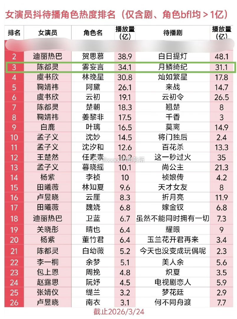陈都灵对月鳞绮纪热度的贡献度🈶