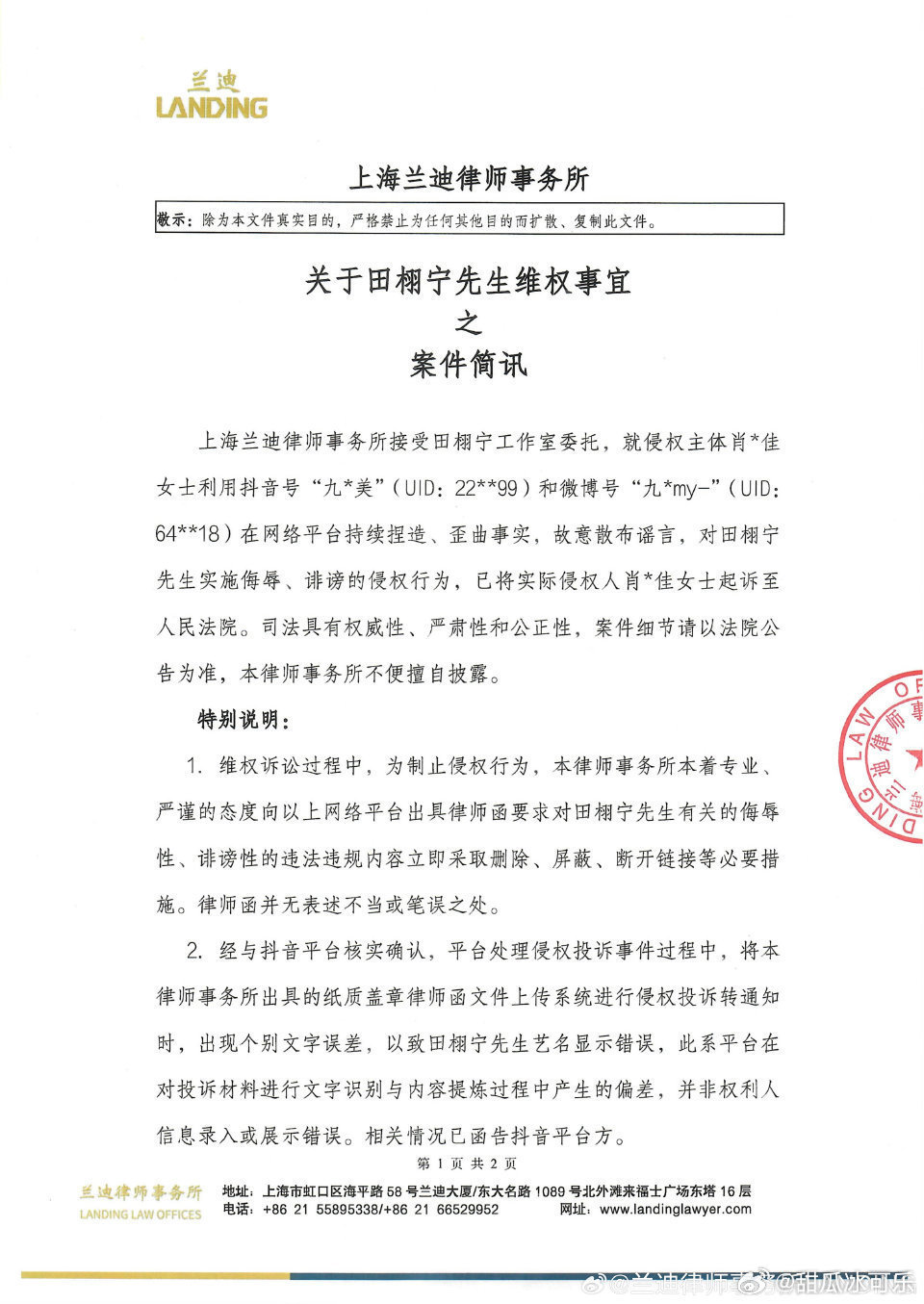 律所发布田栩宁维权案件简讯拒绝法律娱乐化,请保持对法律的敬畏之心!支持田栩宁维权!