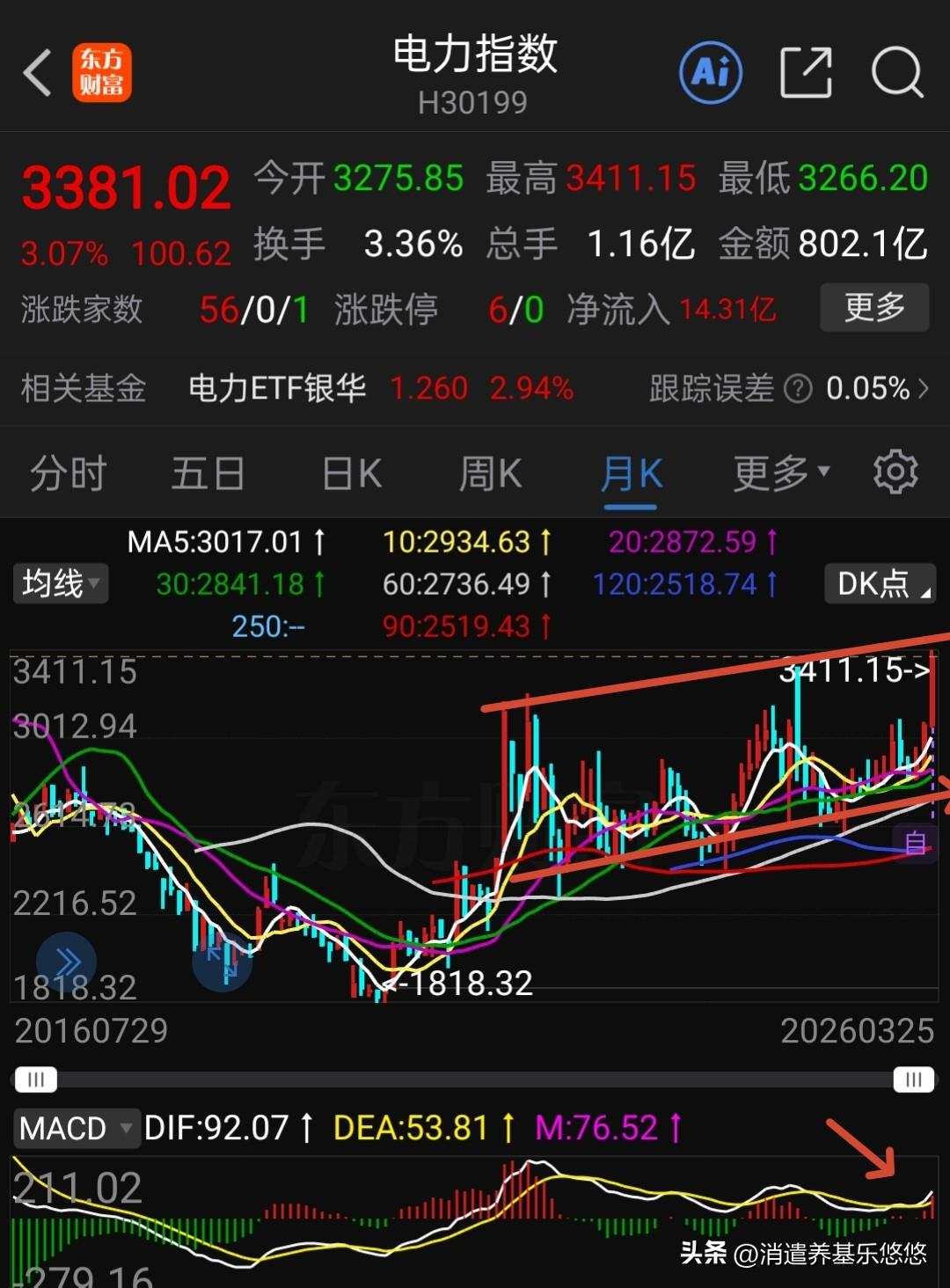 电力行业如何操作?电力行业这两天强势反弹,今天板块指数已经创新高,这个板块最近表现比电网设备强势,回调幅度不大,反弹力度不小。现在看,日线周线月线还处于上升趋势中,今天创新高,主力资金流入比较大,超60亿元,稳健的可以分期止盈减仓,激进的可以持仓待涨。