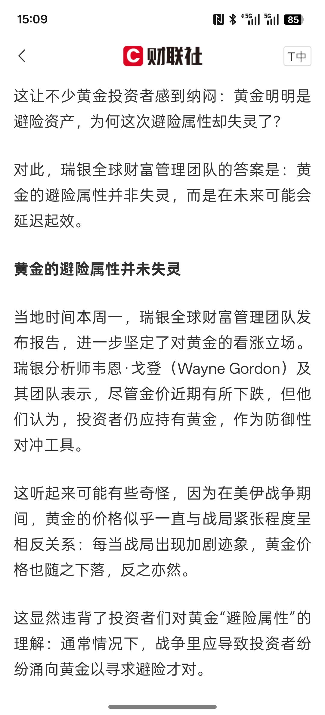 这帮家伙买黄金肯定被套了,美伊战争中黄金为何下跌?瑞银:避险属性并未失灵 只是延迟生效,当前依然还有很多机构在吹捧黄金要上涨,黄金这一轮的上涨也是一个十年左右的大周期,是货币宽松导致的黄金价格大幅上涨,同时是美债的需求下跌导致的黄金价格上涨,尤其是美联储降息催生了黄金持续上涨?战争避险并不是那么明显。需求黄金配置!美国与伊朗的战争对黄金起步到需求避险的作用!