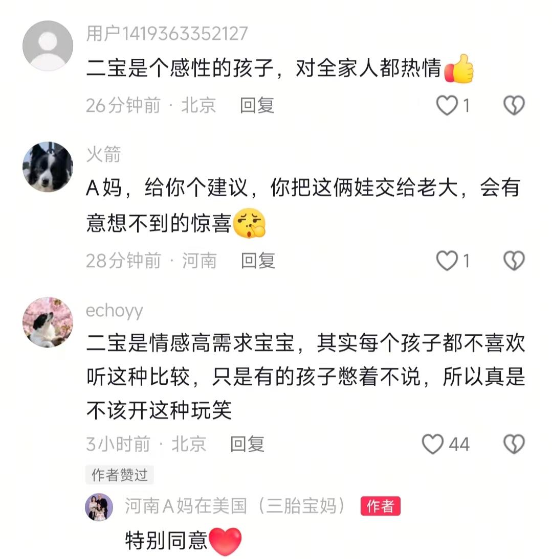 我开始有点理解杰森了 a妈这么完美的女人,谁会不喜欢啊? 不仅是因为能照顾好三宝,最重要的是说到做到,没电视看就没有,真给力 说真的,今天摸鱼刷到河南a妈的视频,本来想找个温馨日常治愈下,结果越看越郁闷。好好的一家五口春游预告,评论区居然吵翻了天,我和小伙伴都惊呆了,带娃这点事,怎么就有这么多非黑即白的“标准答案”啊? 老实讲,a妈这条视频本来还挺治愈的,她说明天要和杰森带三个娃去春游,东西都提前准备妥当了,看着就巴适。然后转头她带着三岁的三宝出门遛弯,小家伙自己颠颠跑去抓门,迈着外八字在院子里晃来晃去,a妈让往东她偏往西,喊破喉咙都管不住,我晕,这不就是所有三岁娃的日常吗?真的是蜀道山都压不住的叛逆。 本来以为三宝的调皮就够热闹了,回家还有更有意思的。刚放一年级第一天假的二宝,明明完成了a妈安排的任务,却没拿到看电视的权限,转头就找杰森告状闹脾气,本来想吐槽a妈说话不算数,但后来想想,带娃本来就没个准谱,谁还没临时变过卦啊。还好杰森耐心问清情况,好好安抚了一顿,父爱直接拉满。嗯,还有正在写作业的大宝,想把作业带去春游写,a妈直接说先写完再玩,该玩就玩该学就学,一家人有商有量的,真的挺给力。 不是吧?就这么一条日常视频,评论区居然能吵成这样。有人说二宝是高情感需求宝宝,大人说话要格外小心,不然很容易伤孩子;还有人盯着三宝的外八字,说鞋子不合脚要赶紧纠正,不然以后走路不好看,也有人说刚学走路的娃都这样,纯属正常,胡扯什么要干预。 说真的,我闺蜜家娃之前也这样,刚学走路外八,全家紧张得不行,跑了三趟医院,结果医生说就是平衡能力没发育好,长大自然就顺过来了,白焦虑了大半年。之前听一个长辈说过,凡事都有自己的节奏,强求不来,就跟花开有早晚一样,哪能都按一个时间表来啊? 总之,我想说的是,网友的说法都有各自的道理,但养娃哪有什么万能公式啊?你总不能拿着别人的尺子,量自己家的娃吧?可能是吧,我自己也没娃,说的也不一定对,但我觉得啊,只要娃健健康康、开开心心的,偶尔有点小状况,不用太玻璃心,你们说对不对?