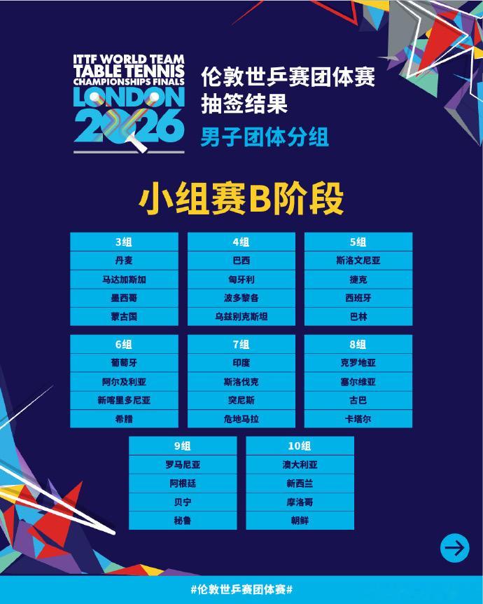 虎扑03月25日讯据国际乒联官网最新信息,伊朗队已确认退出即将于伦敦举行的2026团体世乒赛。受此影响,名单发生调整: