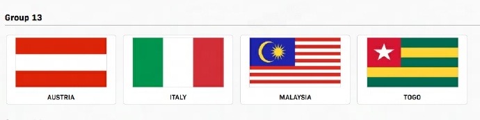 原第13小组的伊朗男队退赛,意大利男队递补;
