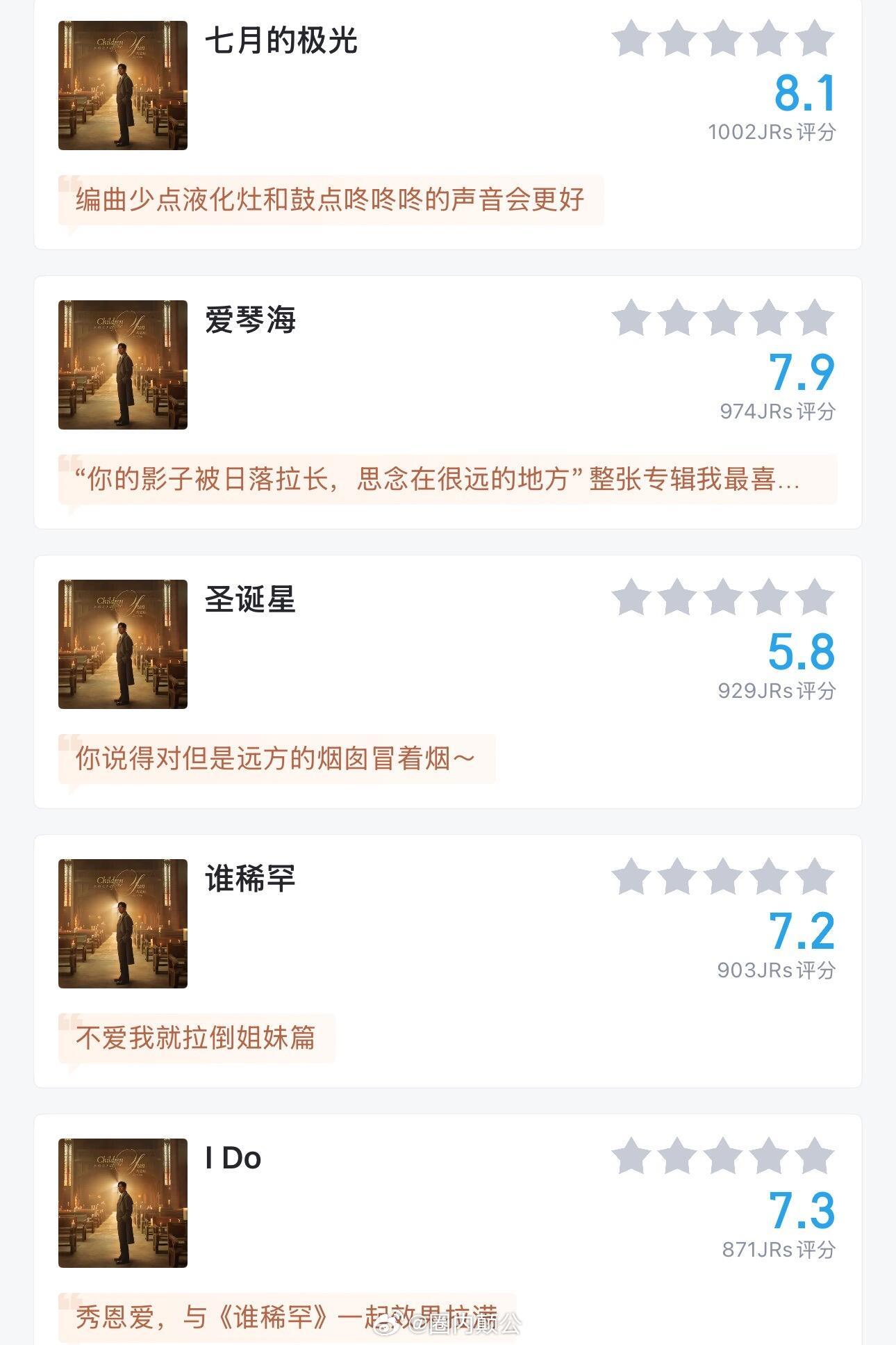 [虎扑评分]周杰伦太阳之子专辑评分