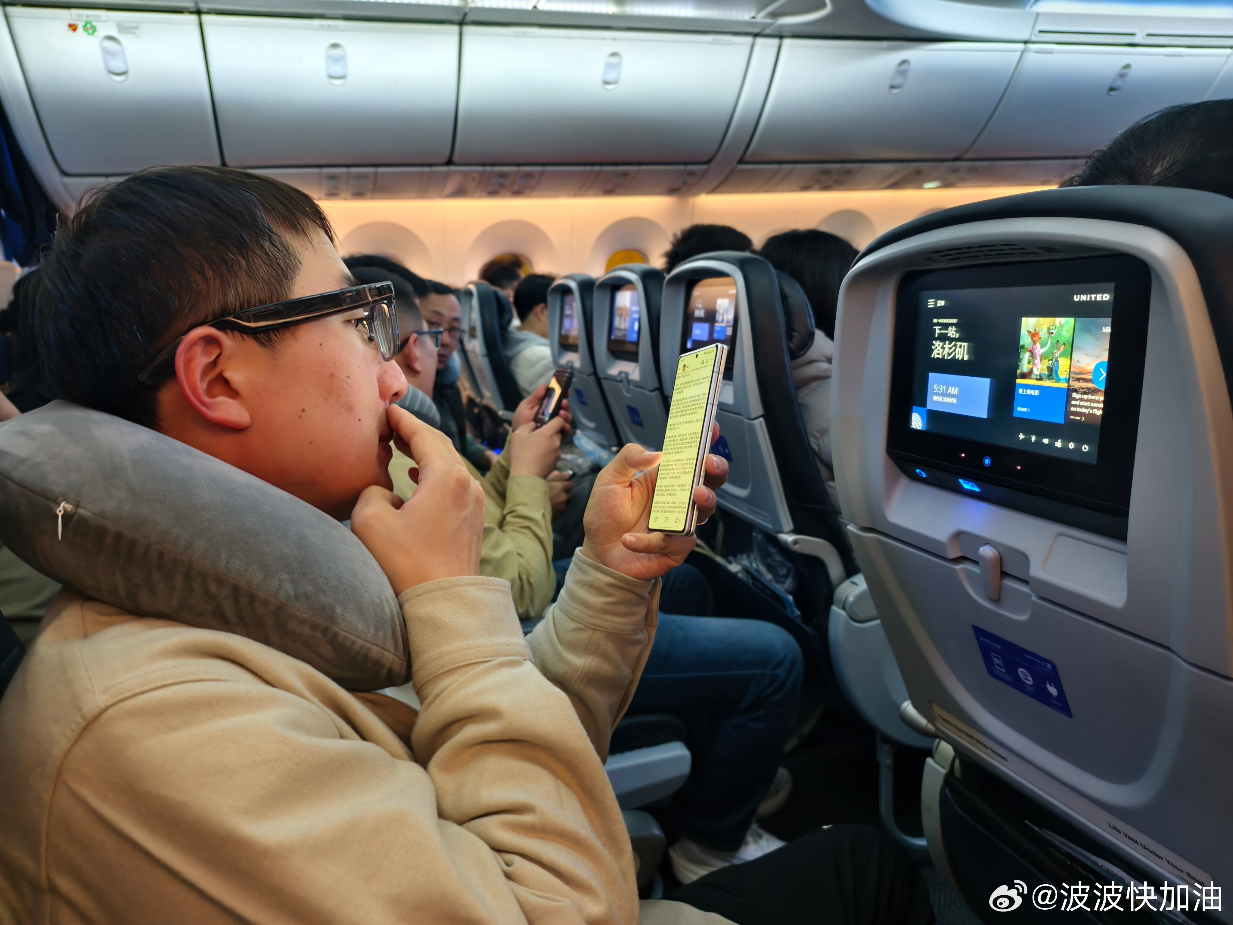 实测波音 787-9 的 55K 位置非常不错,右边空档可以直接放行李。(主要登机晚了头顶没空间了)