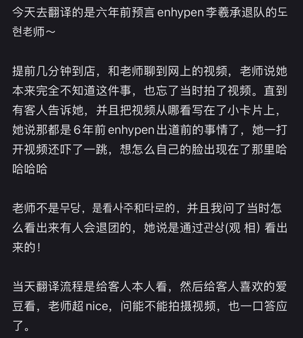 预言李羲承退队的韩国神婆回应 有博主去采访曾经预言李羲承会退队的韩国神婆,老婆婆