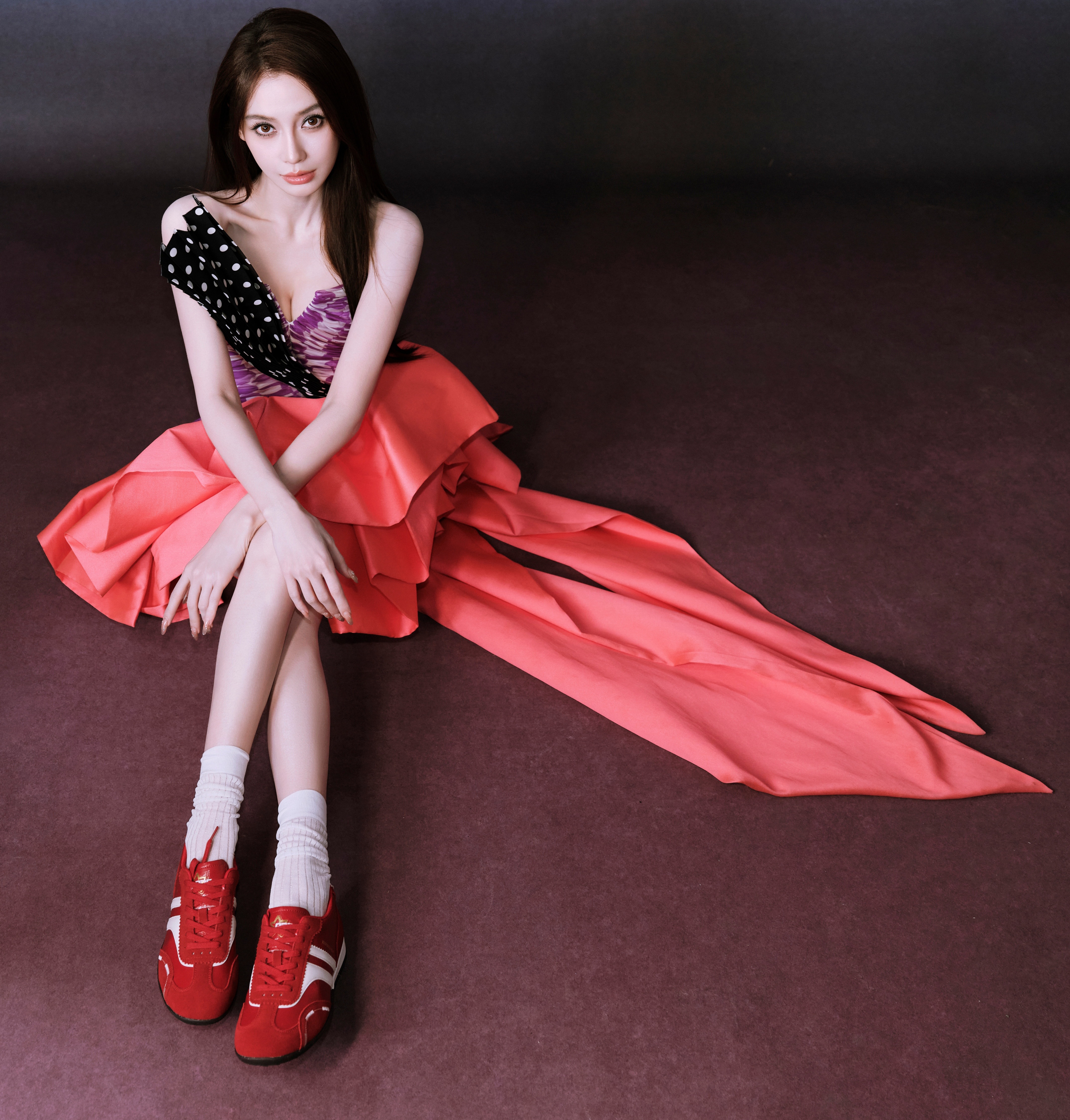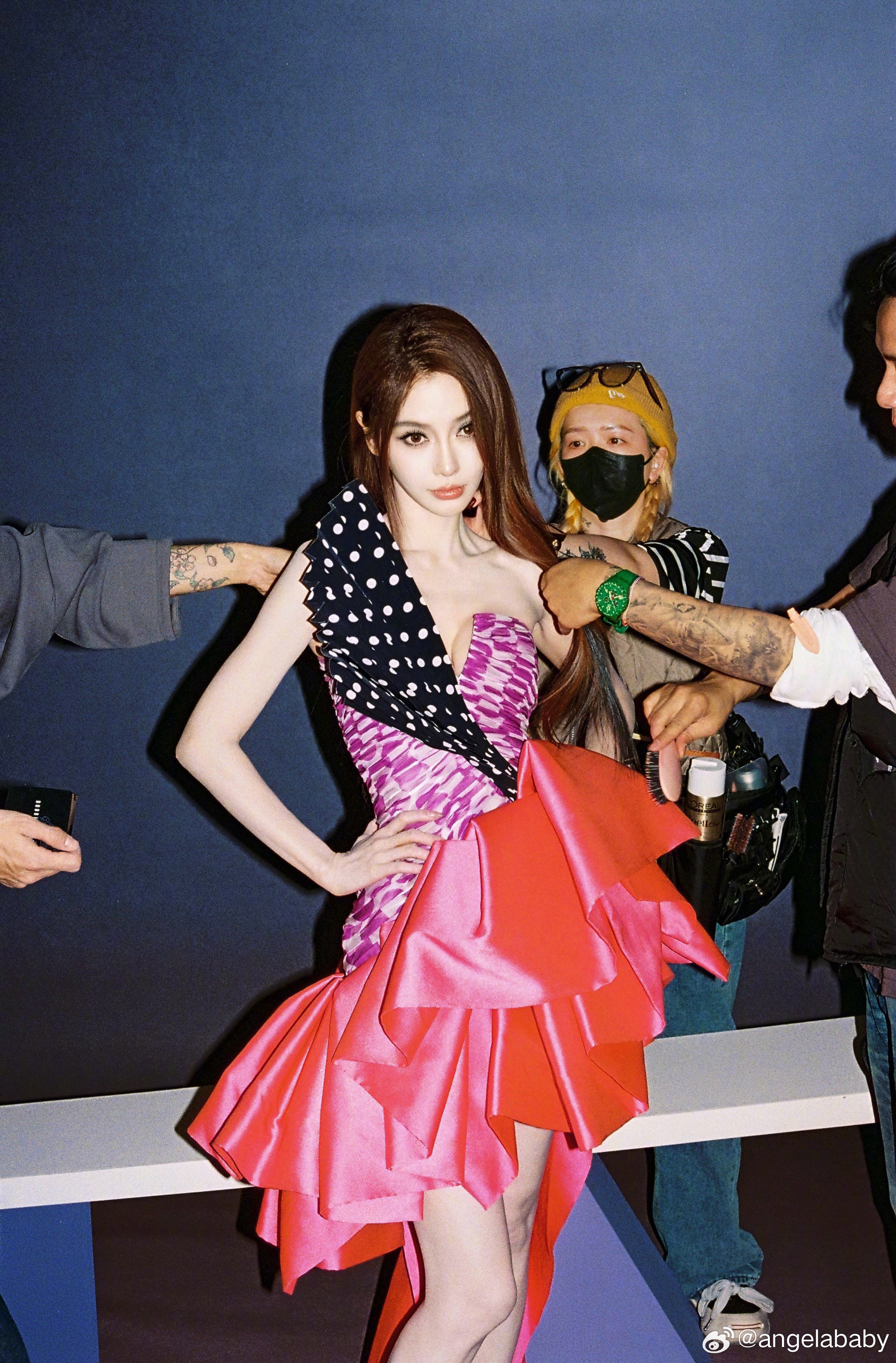 我和Angelababy居然是同一个物种angelababy baby拼色抹胸百褶裙大长腿