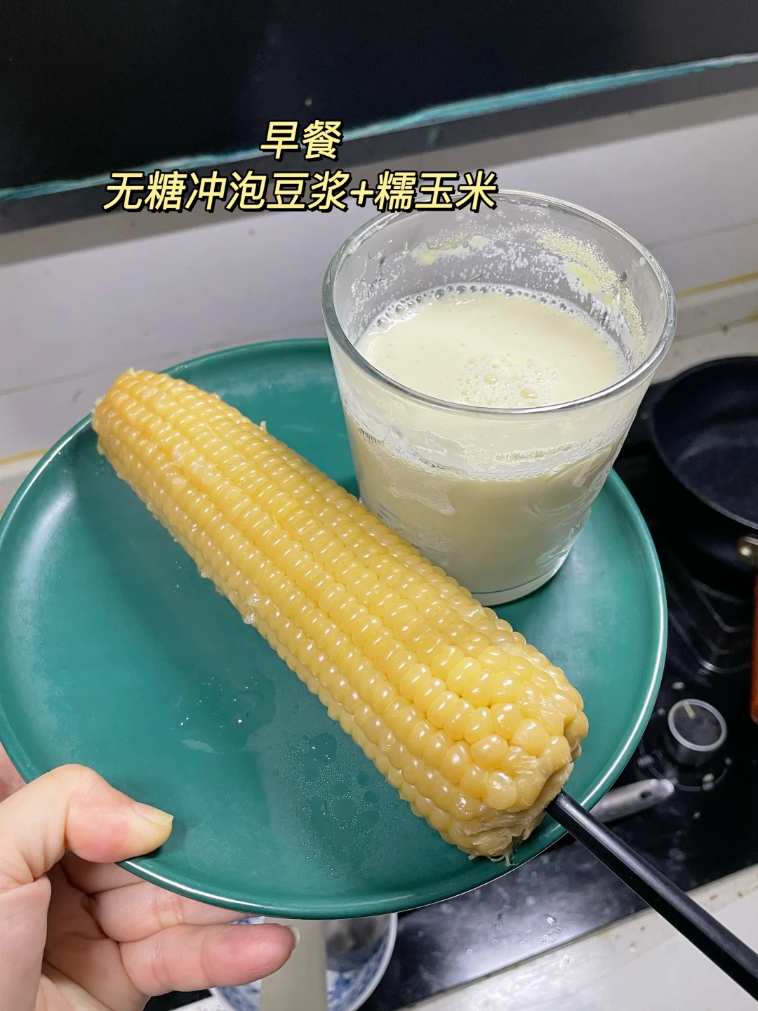 ✅ 早餐:豆浆+糯玉米(7点)