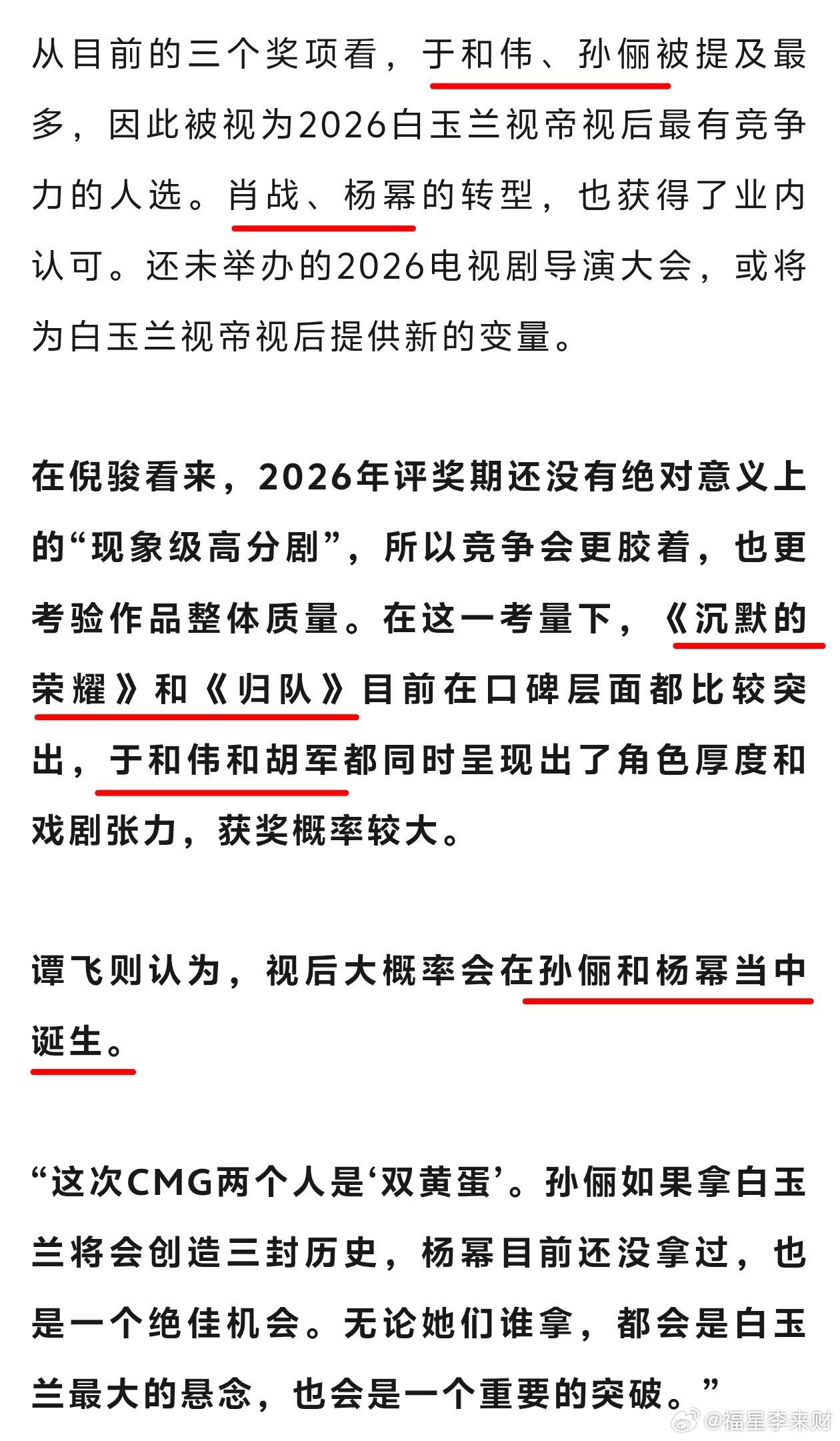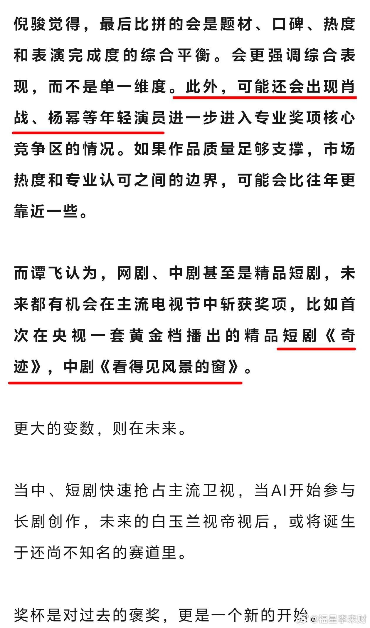 业内谈肖战白宇杨紫杨幂等演员白玉兰得奖率
