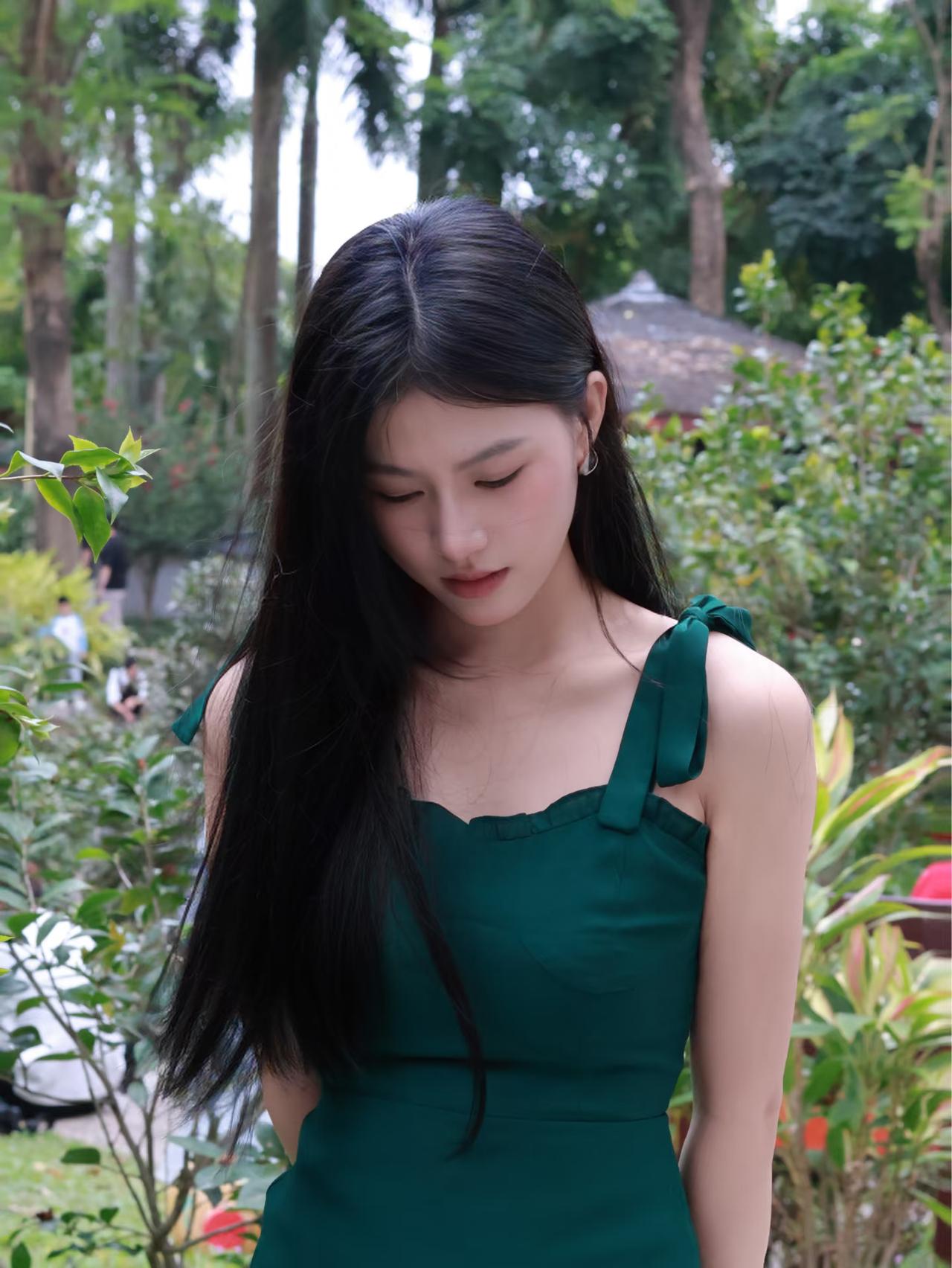 这条绿色裙子👗也太好看了吧,真的好适合夏天🔆😅💦给人一种清新脱俗的感觉,