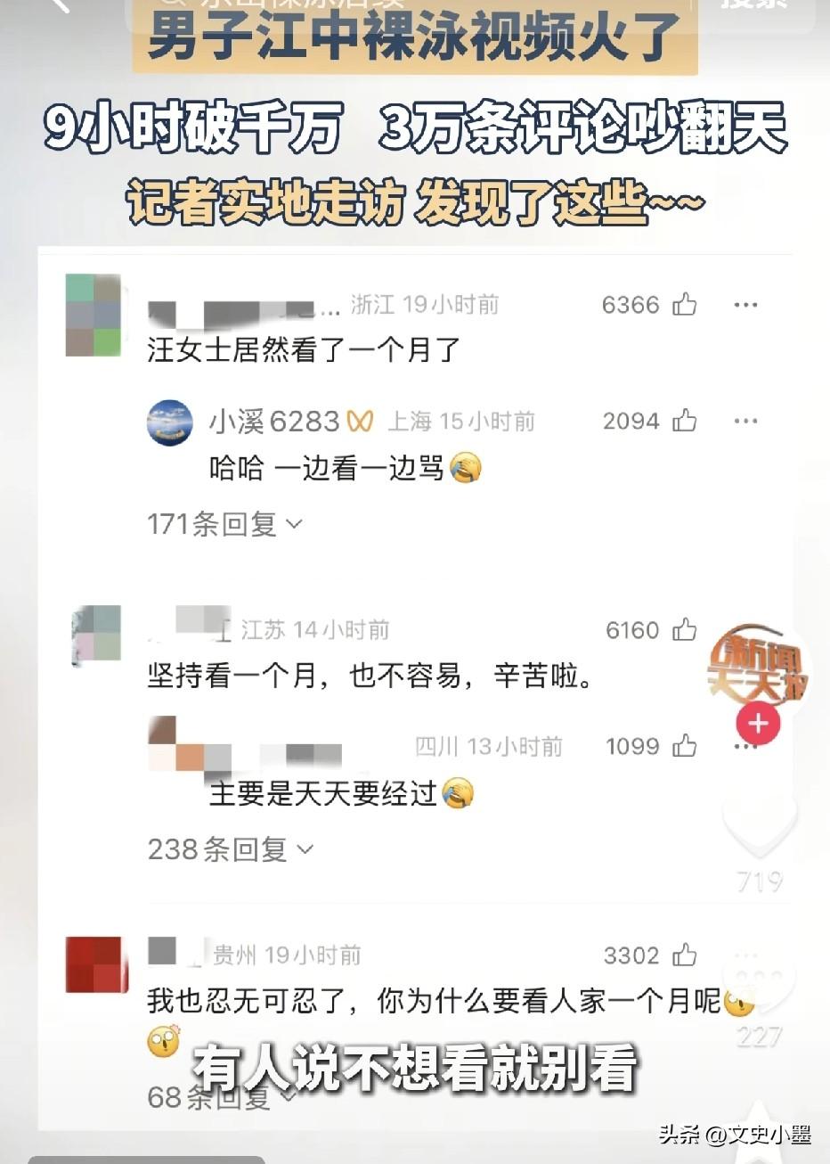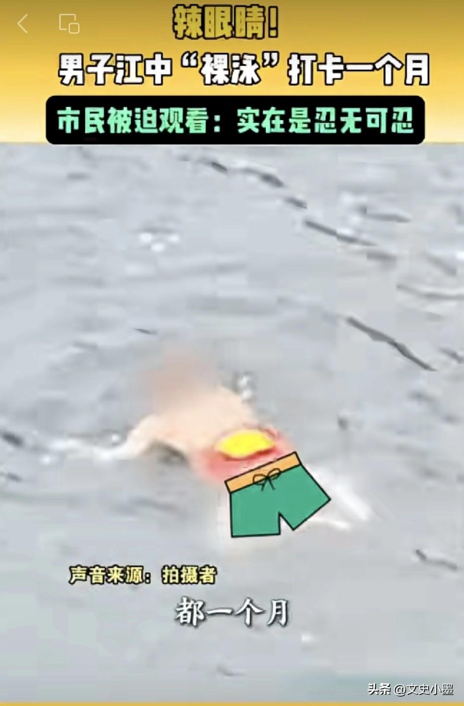 四川乐山,一女子没事总喜欢早上到徐浩大桥附近晨练,然而最近当她经过江边的时候,发现有一年龄四五十岁男子在河里裸泳,虽然是趴在水面上,但某些隐私部位难免会被路人看到,要是游累了再不经意间仰泳,就有点辣眼睛了! 开始的时候,女子汪女士虽然看不惯男子这种行为,但双方毕竟不认识,也不便去制止!没想到,接下来的一个月,男子每天都来裸泳,时间点跟她几乎一致,她被迫看了一个月后,终于忍无可忍找到这名裸泳男子告诉他:你这种不文明行为,应该改一下!毕竟这么多人都从这里路过,男女老幼都有,影响不好! 据悉,在这片水域游泳的人有很多,分早中晚三批,喜欢裸泳的这名男子并不是个例。这片水域是公共水域,不是私人水域,男子裸泳行为有点不妥,情节严重的话可能会被追责,不反对游泳,但一定要体面的游泳,不要给别人带来不适!