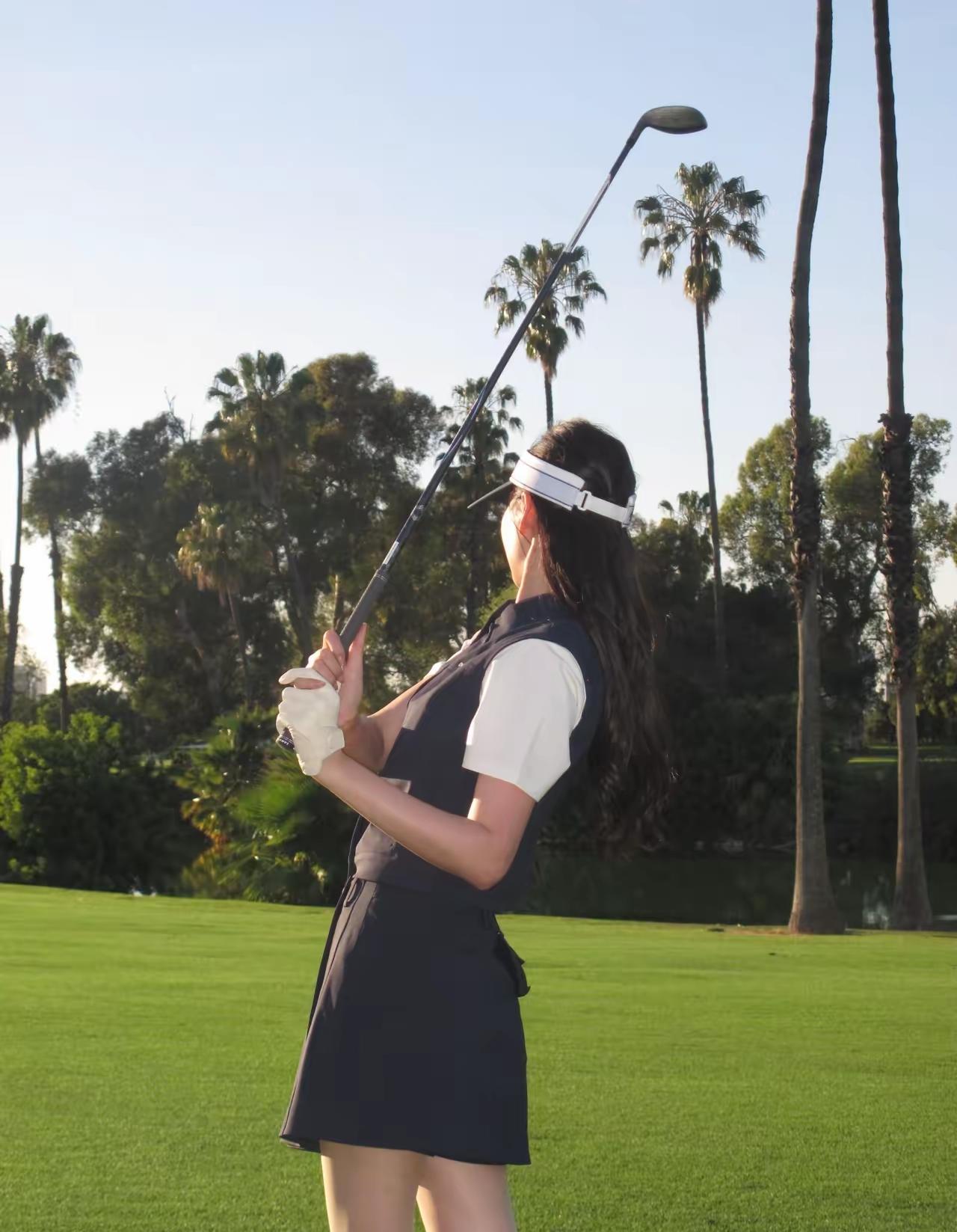 高尔夫少女,挥杆的优雅与自信。户外高尔夫写真 球场少女照 高尔夫女将 美女高尔夫服装