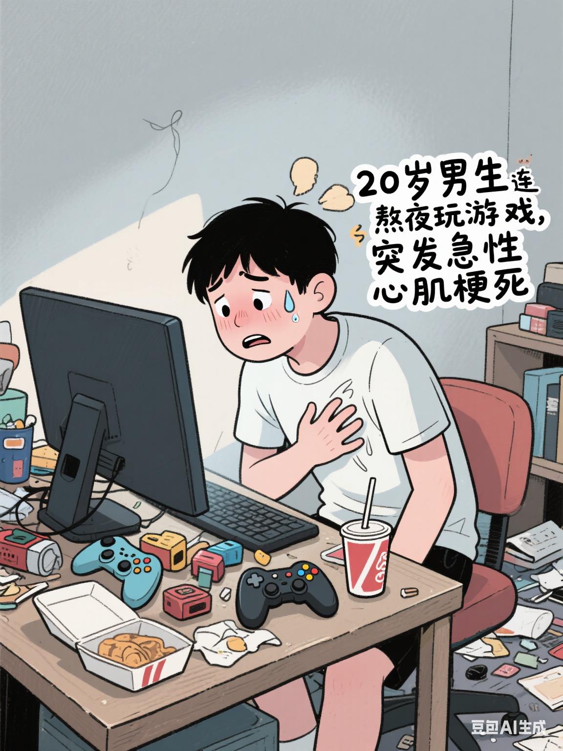 20岁大学生熬夜点外卖竟突发心梗,年轻人的心脏怎么了? 近日,河南一名不到20岁的男大学生因学习压力大,长期吃外卖且连续熬夜,突发胸痛就医,被确诊为急性心肌梗死。检查发现,其心脏三根大血管之一的前降支已完全堵死,这种情况在医学上被称为“寡妇制造者”,死亡率极高。幸运的是,由于就医及时,该学生最终保住了性命。 这并非个例。长沙一名24岁小伙同样因熬夜、吃外卖,在家中玩游戏时突发胸闷胸痛,被诊断为急性广泛性前壁心肌梗死,经紧急手术才转危为安。专家指出,心梗正呈现年轻化趋势,与吸烟、酗酒、精神压力大、熬夜、缺乏运动等不良生活方式密切相关。研究显示,长期熬夜者冠状动脉钙化风险显著增加,而频繁食用高脂外卖则会严重损伤血管。医生提醒,若出现胸痛等症状,应立即就医,抓住发病后120分钟的黄金抢救时间。 20岁大学生熬夜点外卖竟突发心梗 心梗自救妙招