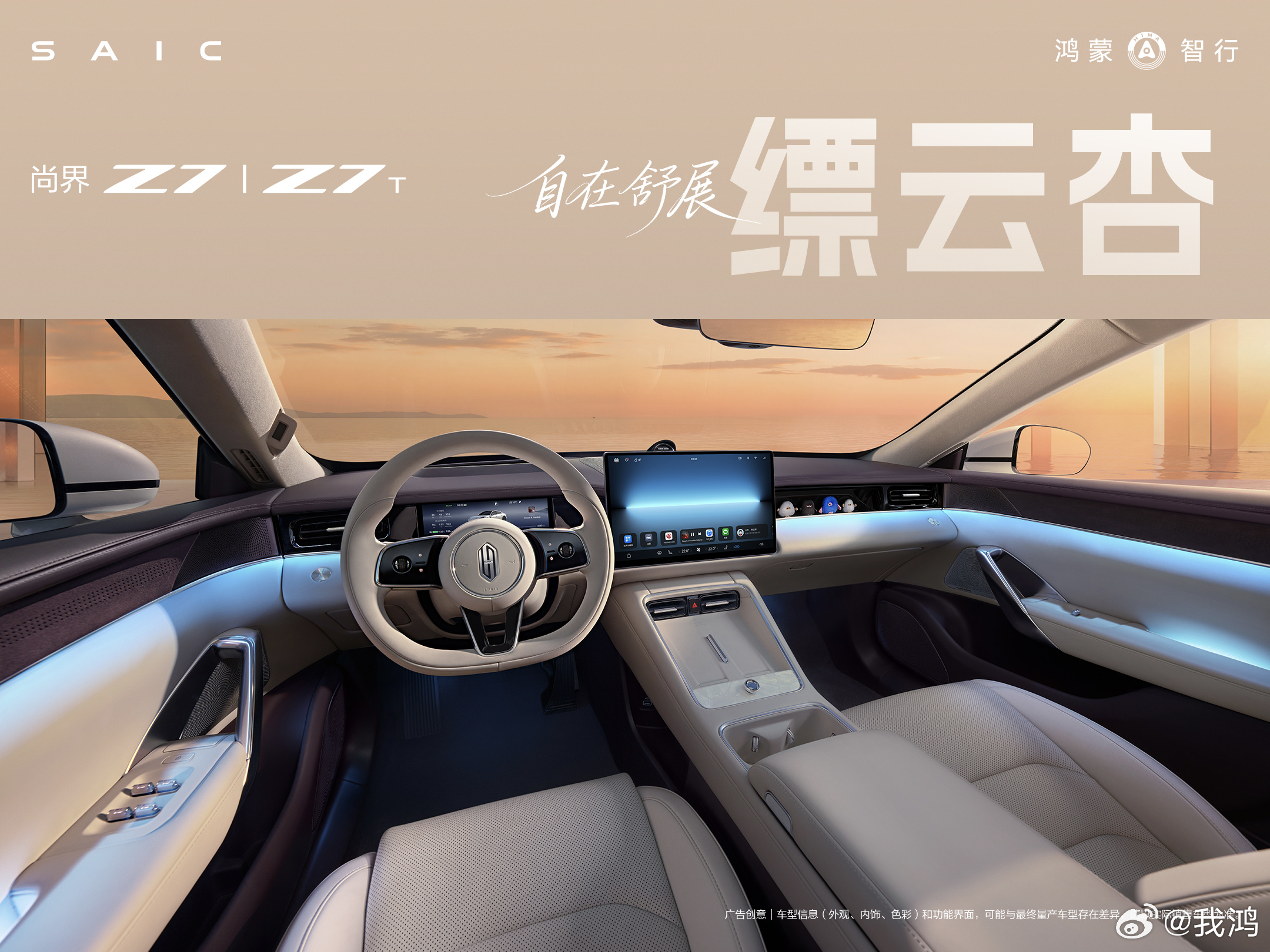 尚界Z7、尚界Z7T 沁夜红、凝夜紫、速影黄、闪金黑、缥云杏五款内饰,供大家选择。