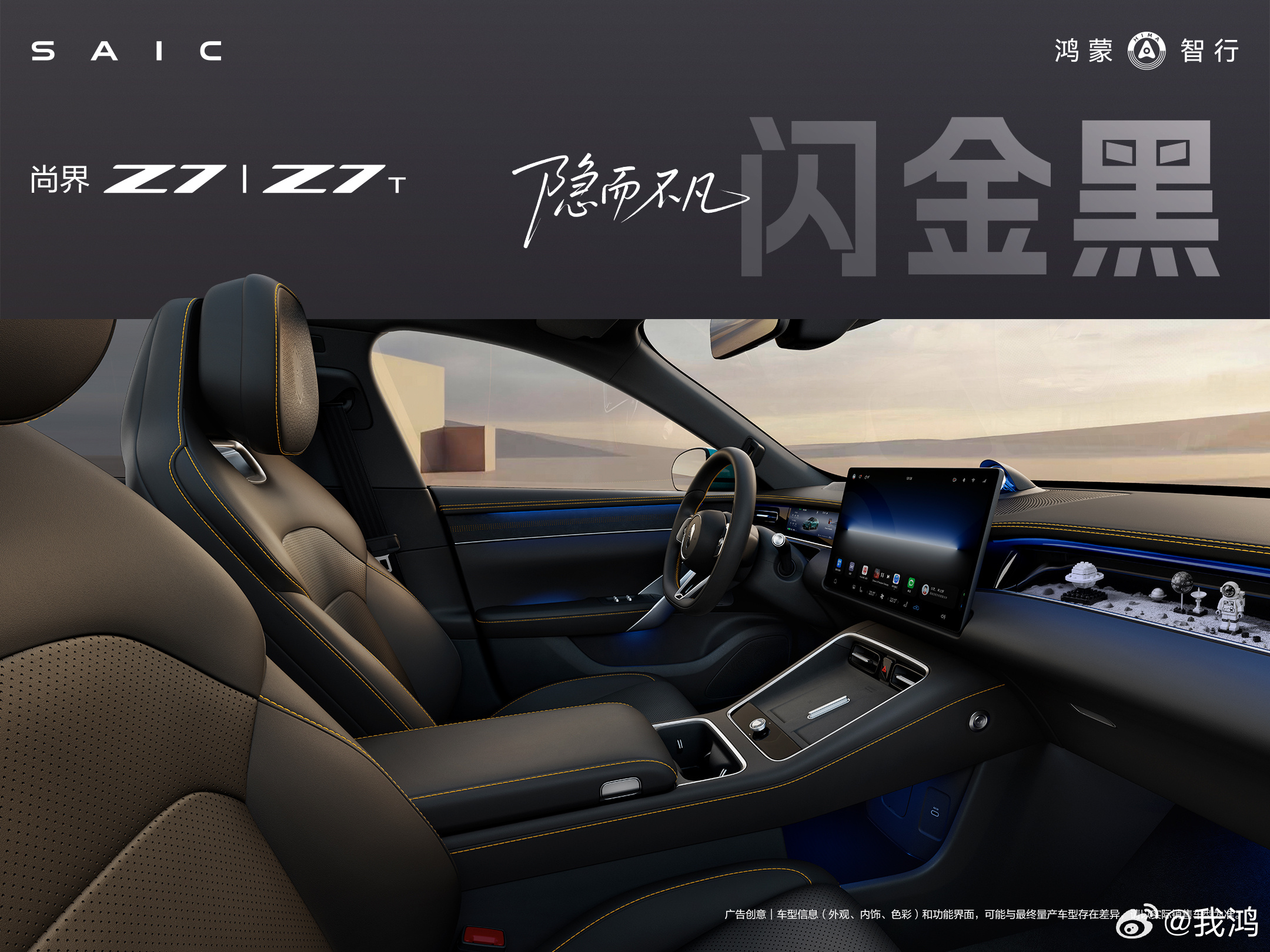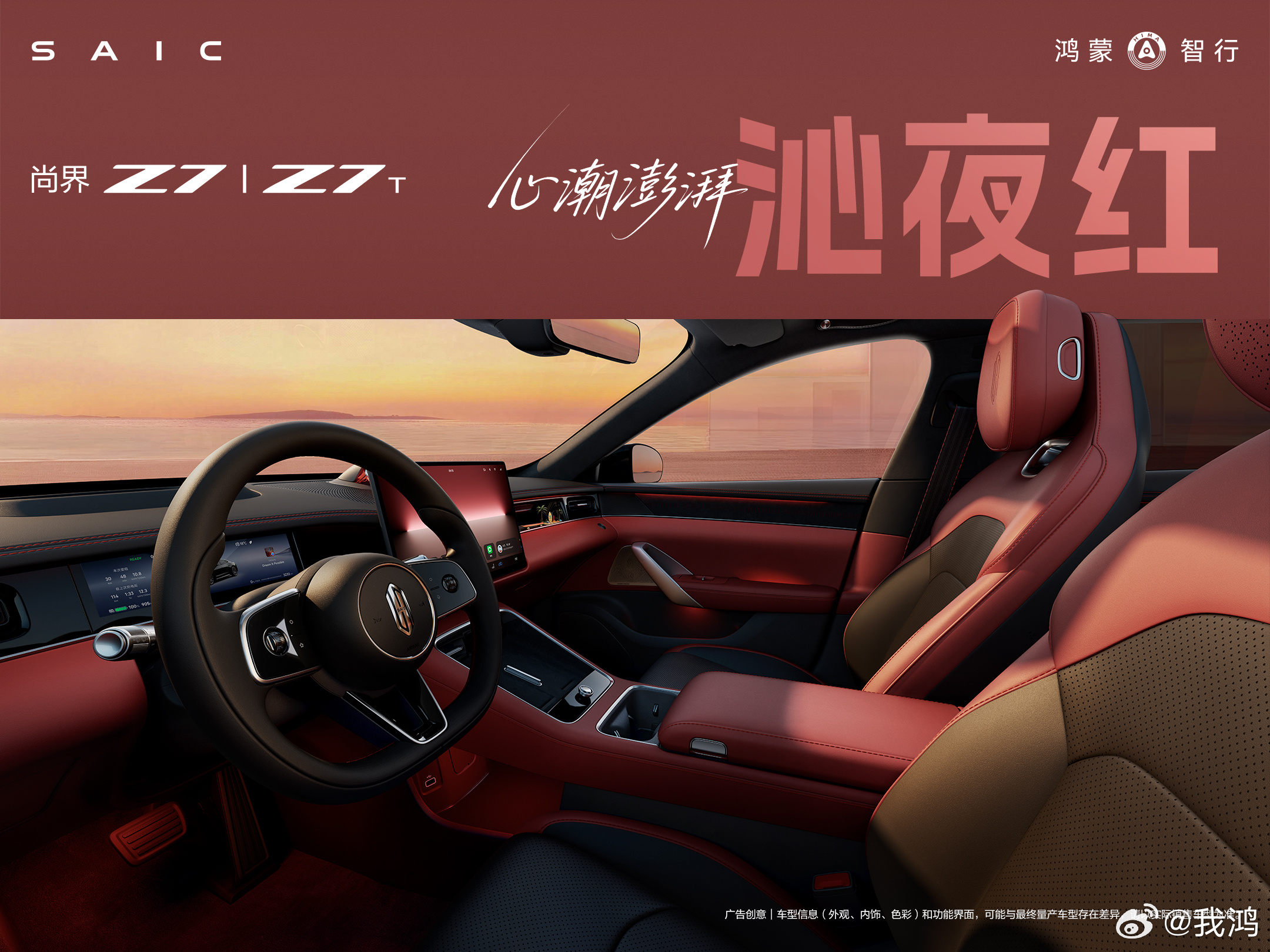 尚界Z7、尚界Z7T 沁夜红、凝夜紫、速影黄、闪金黑、缥云杏五款内饰,供大家选择
