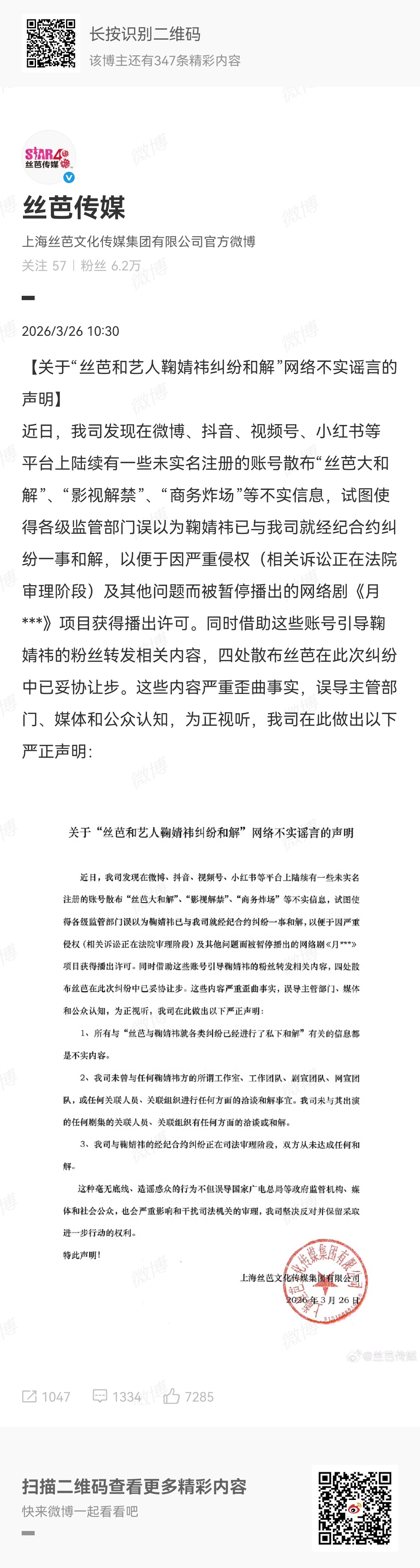 郭敬明刚上线了郭敬明刚上线丝芭传媒发声明否认与鞠婧祎纠纷和解称网传和解是为《月鳞