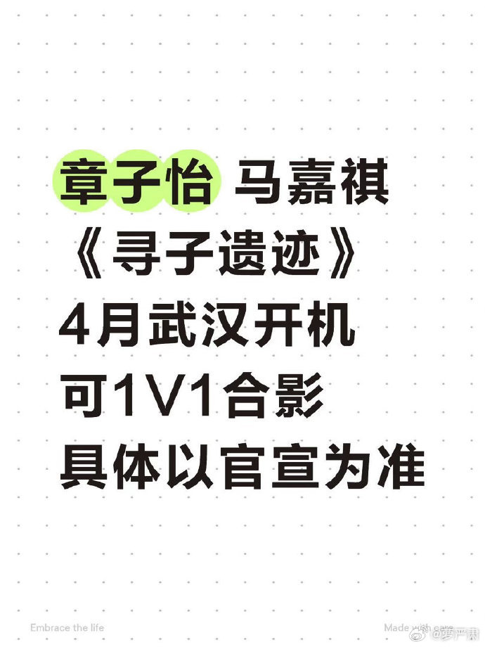 网传章子怡新片《寻子遗迹》合作马嘉祺,导演曹保平。