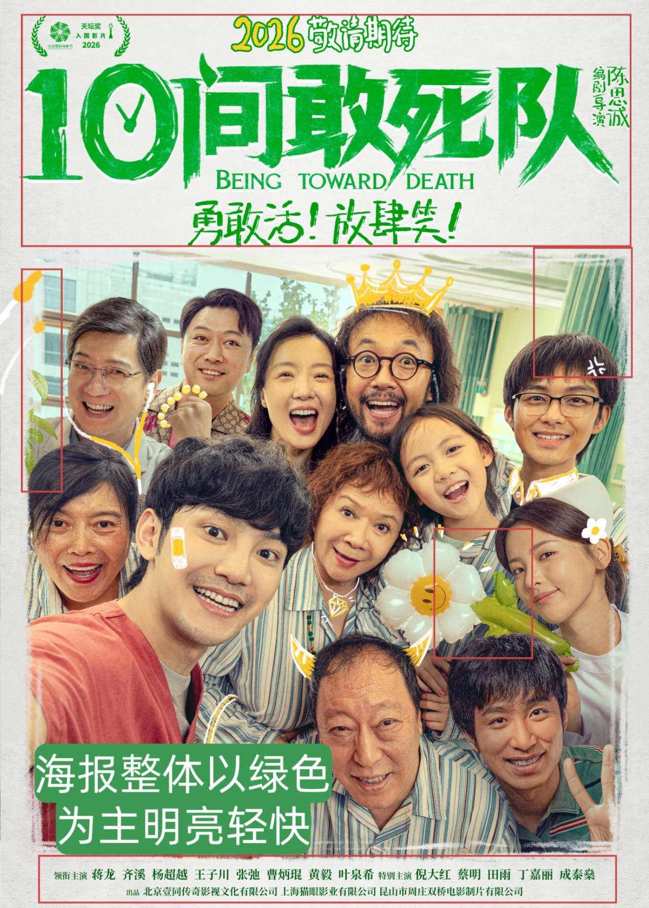 10间敢死队片名何意味电影10间敢死队入围北影节天坛奖一开始真被片名骗到了,以为是枪战动作片,结果看了先导片才懂,这才不是打仗的敢死队啊片名里的“10间”是10号病房,“敢死队”是一群看似被命运判了死刑,却依然选择放肆活着的人。他们不是上战场,而是和生命死磕;不是冲锋陷阵,是抱团向阳而生。原来最勇敢的敢死队,从来都在人间,在每一个敢想敢活的普通人身上。电影已经入围北影节天坛奖,期待先睹为快了!