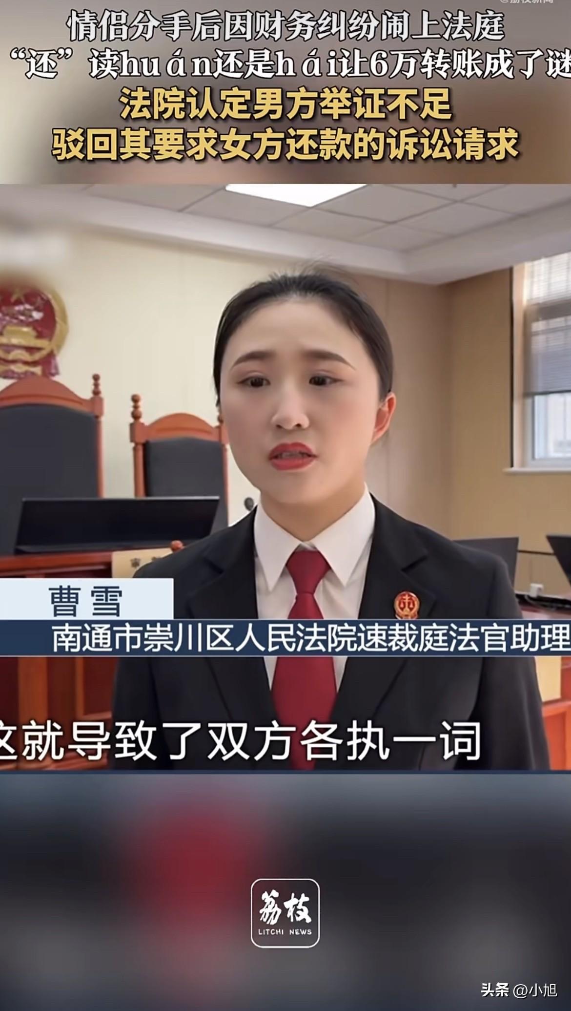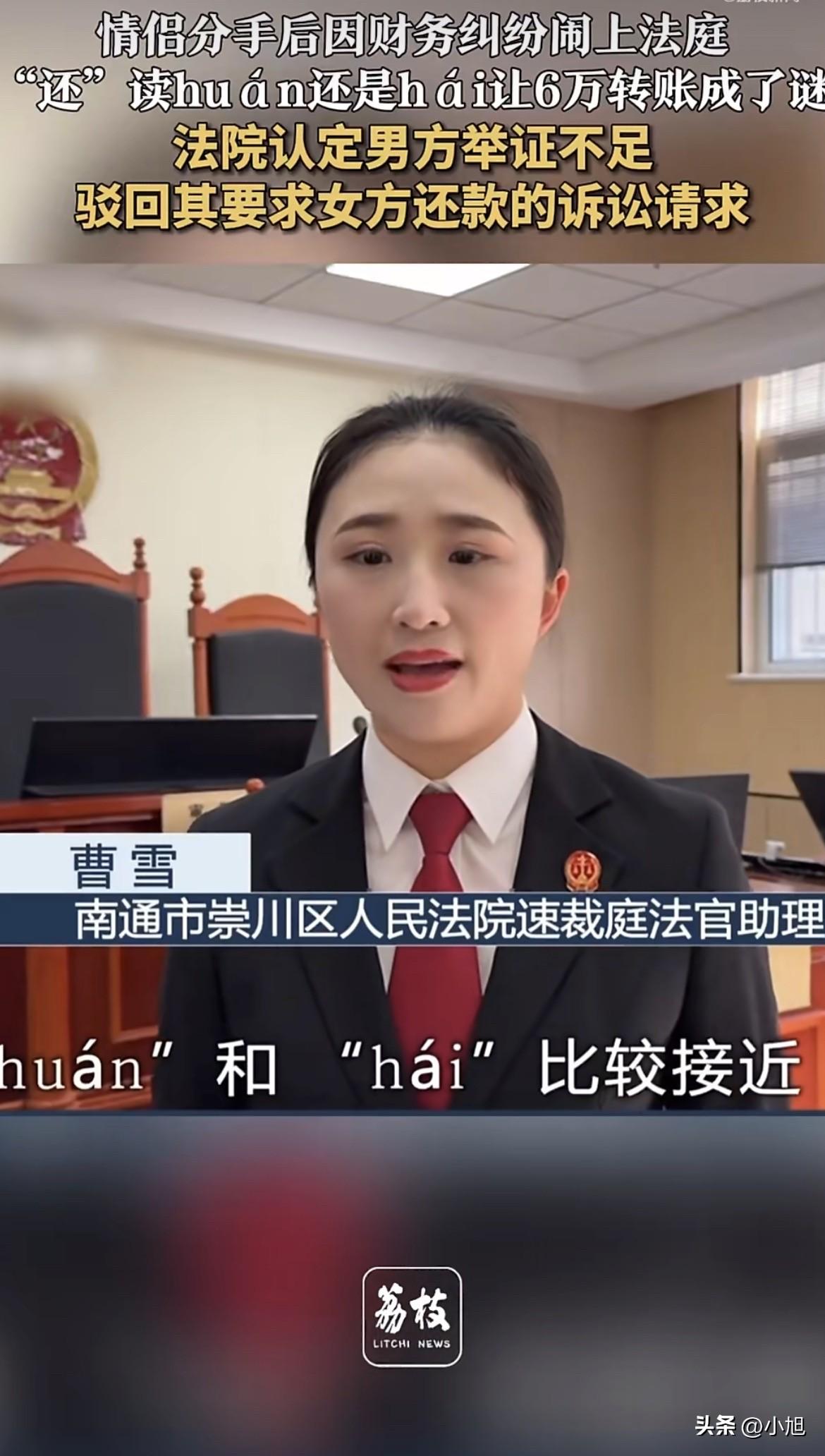 江苏这对情侣因为6万块钱闹上法庭,最后输赢定在一个字怎么读上。这事听起来荒唐,但