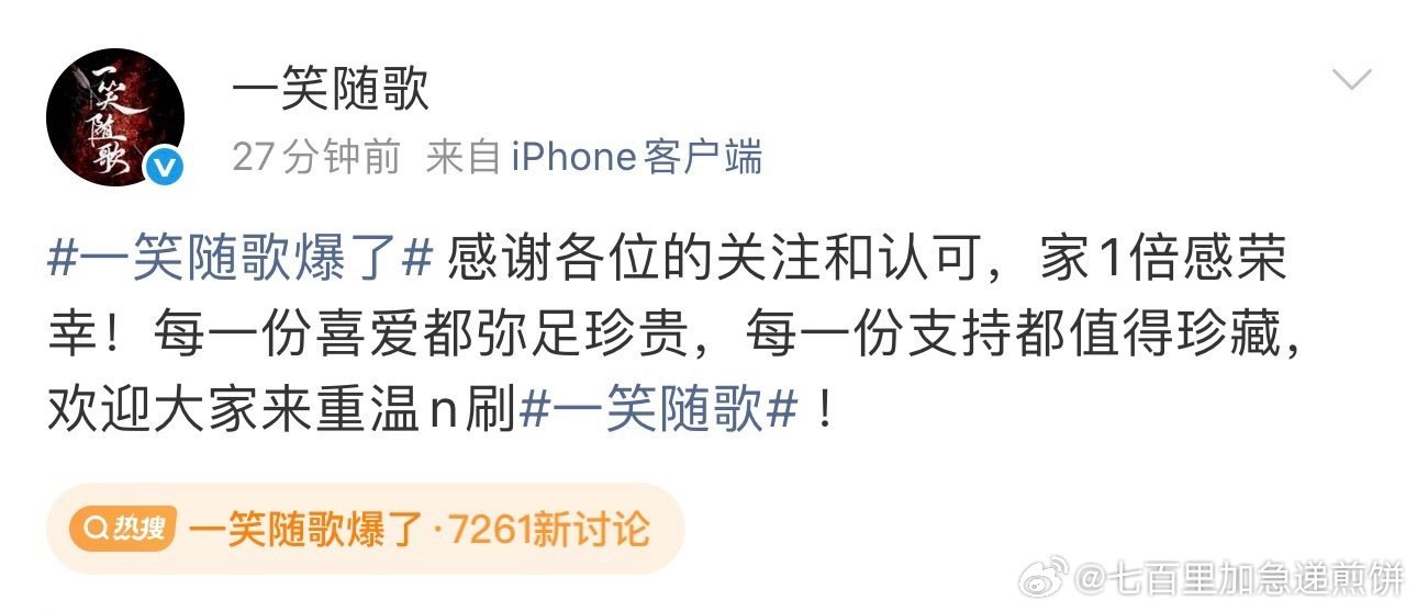 李沁、陈哲远主演的《一笑随歌》官博发博一笑随歌爆了