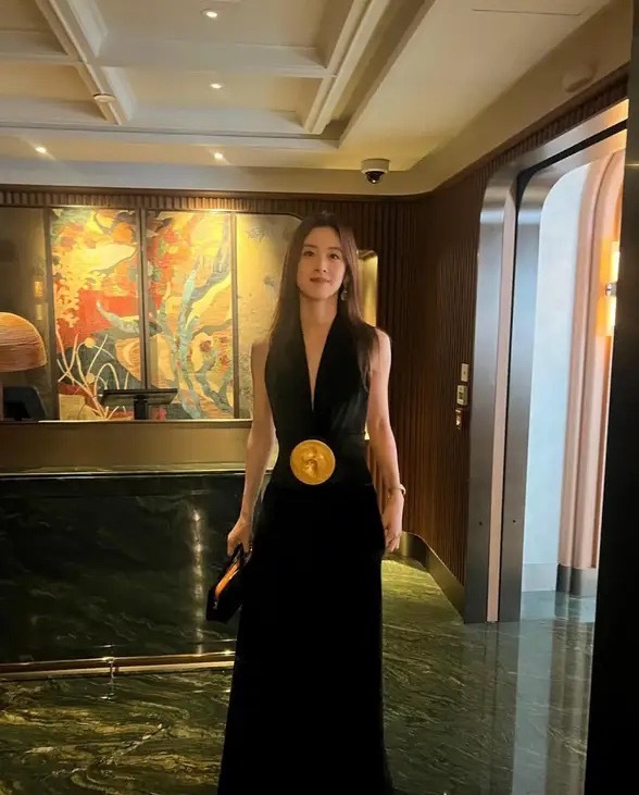 章泽天INS晒新照:黑色V领连体衣显干练,妆容精致好优雅!