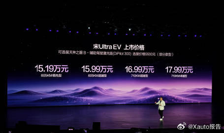 宋Ultra全系标配闪充15.19万起比亚迪宋Ultra EV上市即交付,售价15.19万-17.99万,为首款搭载二代刀片电池的B级闪充SUV。全系标配闪充,10%-70%仅5分钟、10%-97%仅9分钟,极寒充电效率出色,享1年免费闪充。