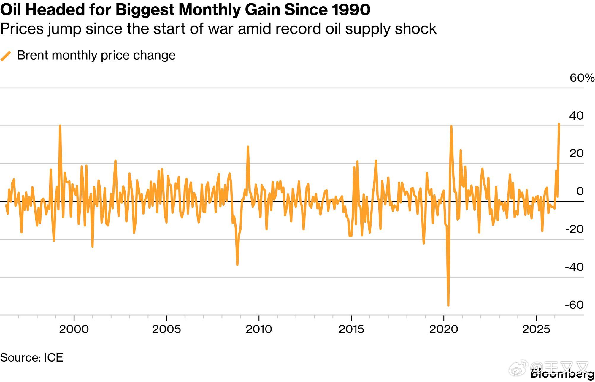 能源与航运成为本轮冲突的核心焦点。霍尔木兹海峡实际上处于“被封锁状态”,伊朗甚至起草法律,拟对通过该水道的船只收取费用(市场传闻高达200万美元),以强化其控制权。在此背景下,全球能源供应受到严重冲击:布伦特原油价格升至100–106美元/桶,创下自1990年以来最大月度涨幅,美国汽油价格逼近每加仑4美元。与此同时,伊朗反而从中获利——由于其他产油国出口受阻,其原油仍通过霍尔木兹出口,价格折扣收窄,收入显著增加。
