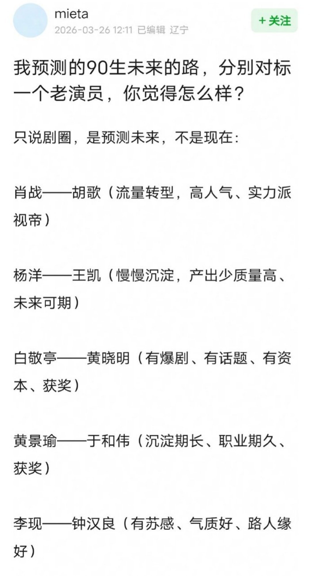 网友预测90生未来发展路线肖战、杨洋、白敬亭黄景瑜、李现、欧豪白宇、龚俊、彭昱畅