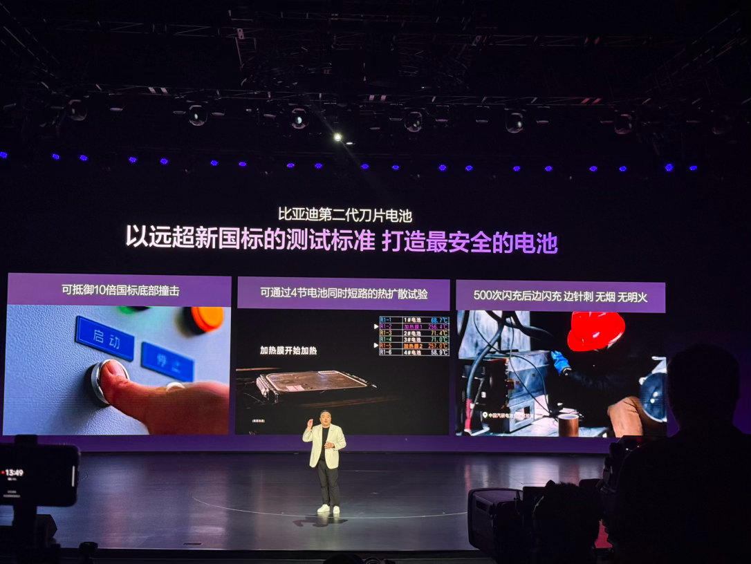 比亚迪第二代刀片电池也不用担心安全问题,以选超新国标的测试标准,打造最安全的电池。