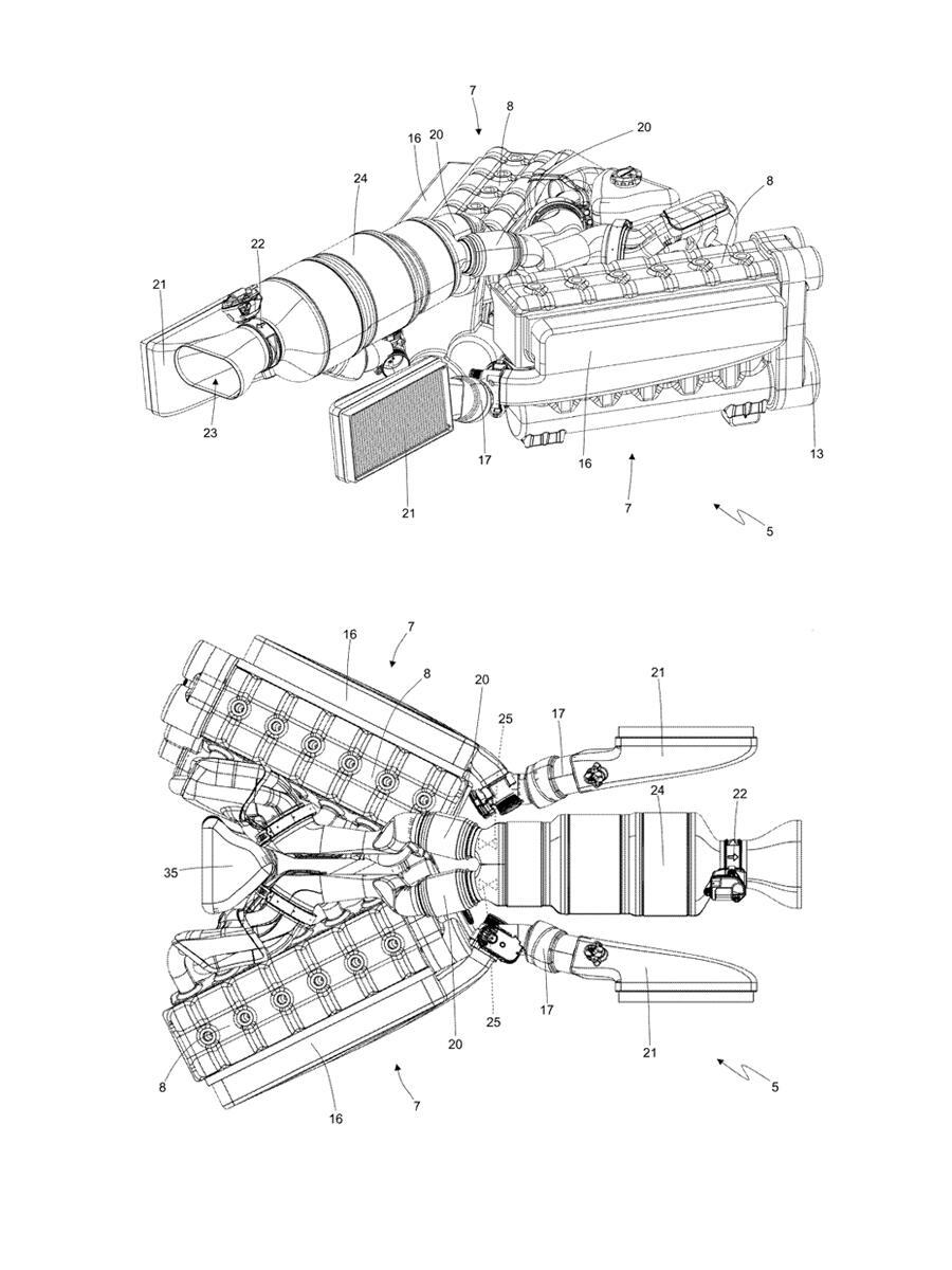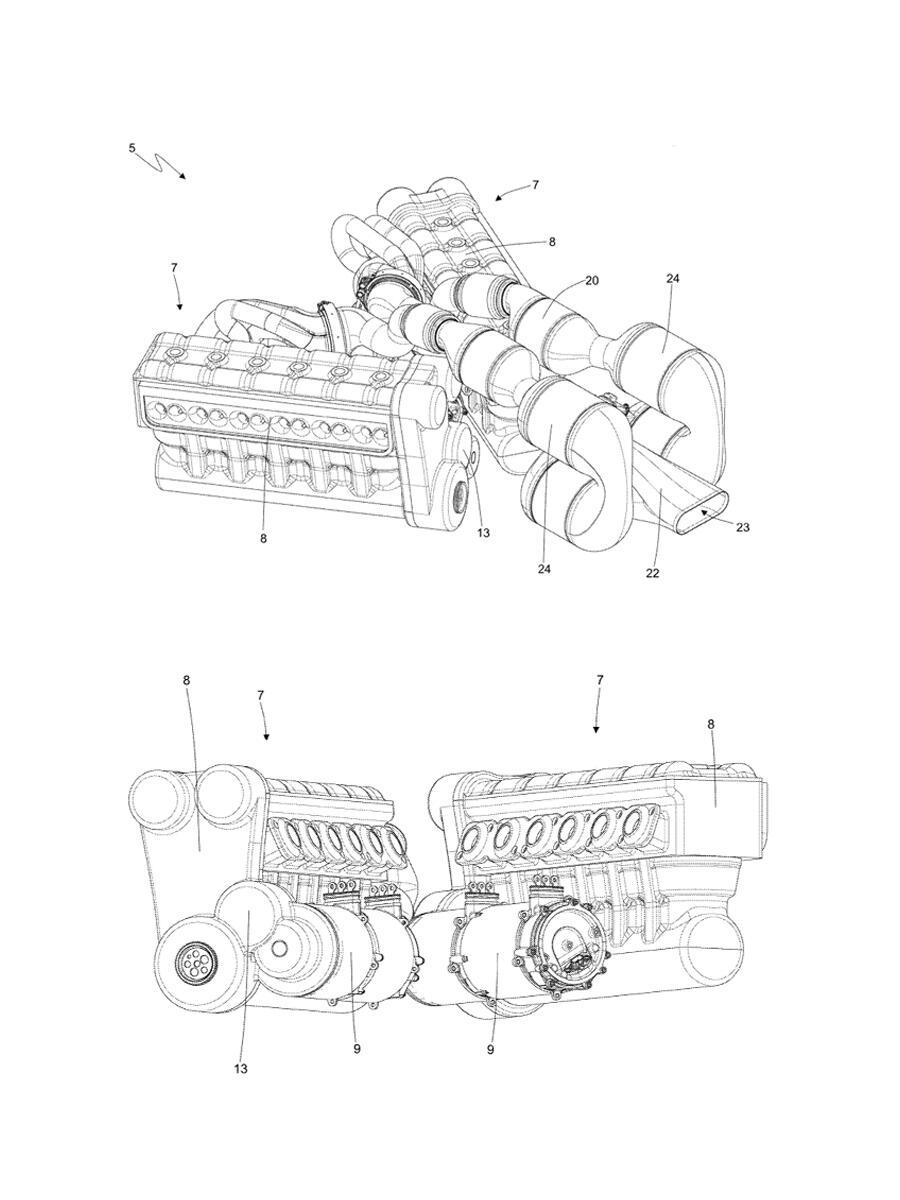 法拉利要整个大活儿啊。新的12缸发动机的专利,居然拿来当增程器用。这套东西其实是拿俩直列六缸布置的,两台发动机分开,可以作为独立増程器使用,有点意思!