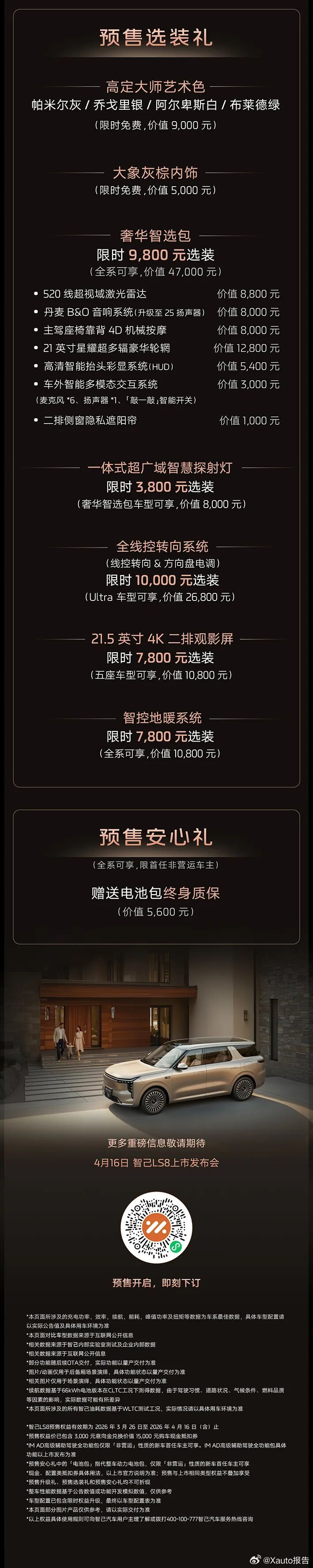 一图看懂智己ls8震撼开启预售,25.98万元起。智己LS8震撼预售25.98万
