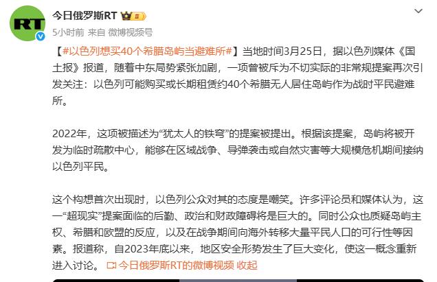 以色列想购买或者租赁希腊40个无人岛作为以色列人的避难所。 希腊千万别同意啊,他们来了可能就赖着不走了。 然后会以这些岛为前沿,然后声称这是他们应许之地,再然后,周边的海就变成了他们领海。 再然后,希腊就是他们的应许之地了。 这招可能就是特洛伊木马的翻版。 看看他们周边的情况,长点心吧。 点右上角关注我,我们一起去看这个魔幻的世界
