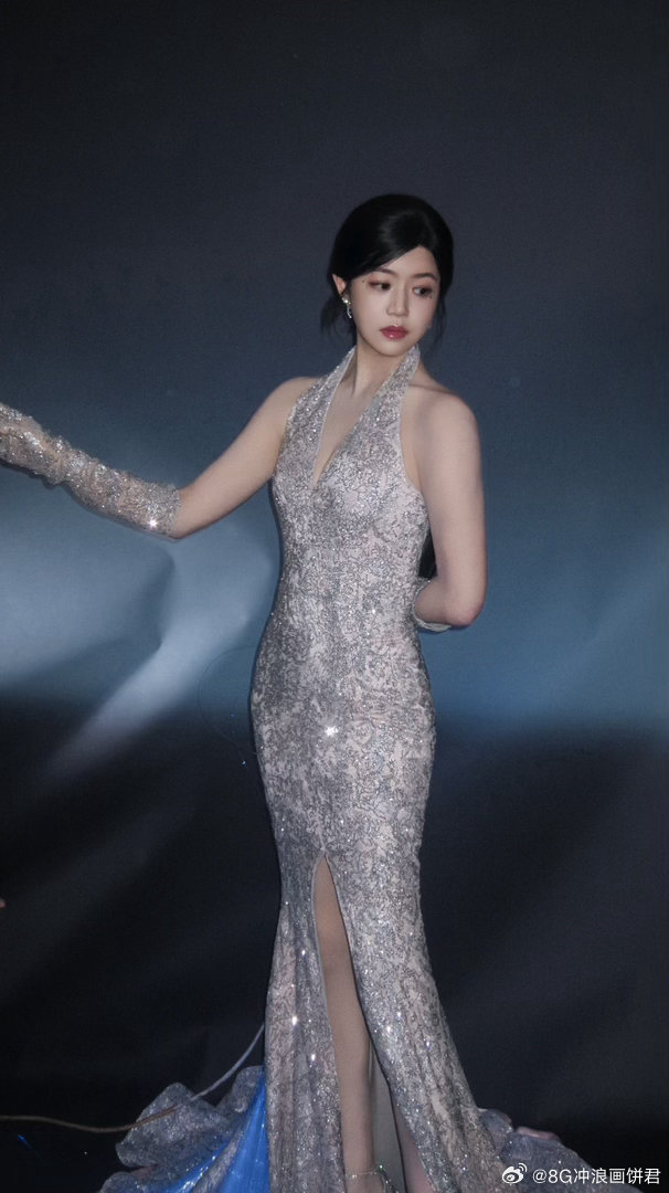 陈妍希赛博千金 陈妍希今晚真的把“赛博千金”四个字穿在身上了!深V挂脖、高开衩鱼尾、流光溢彩的亮片,每一帧都是未来感大片!