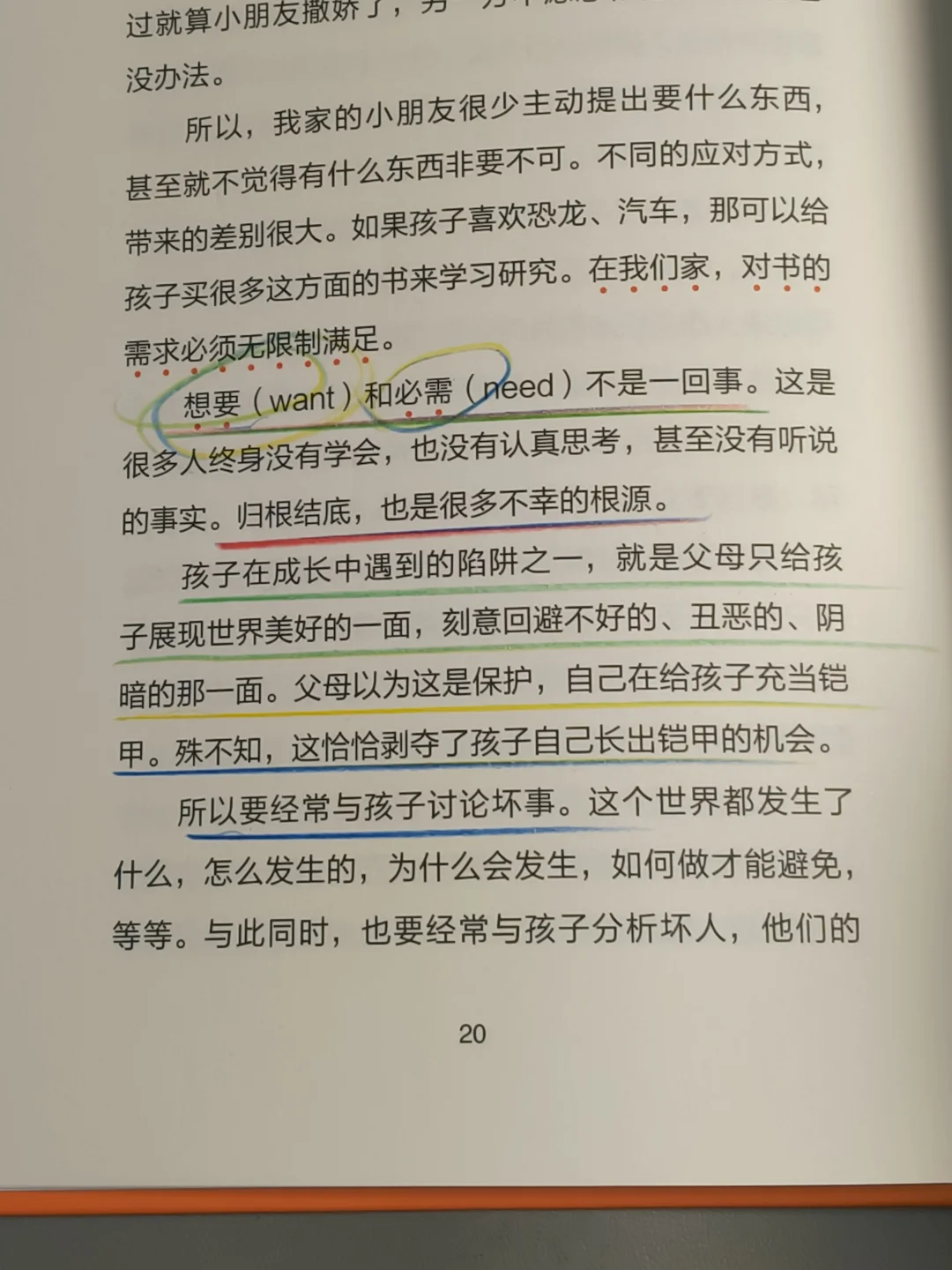 ✔️直⾯困境:告诉孩⼦“想要的得不到,是⼈⽣常态”。区分“想要”和“必需”。