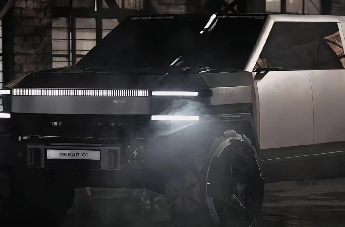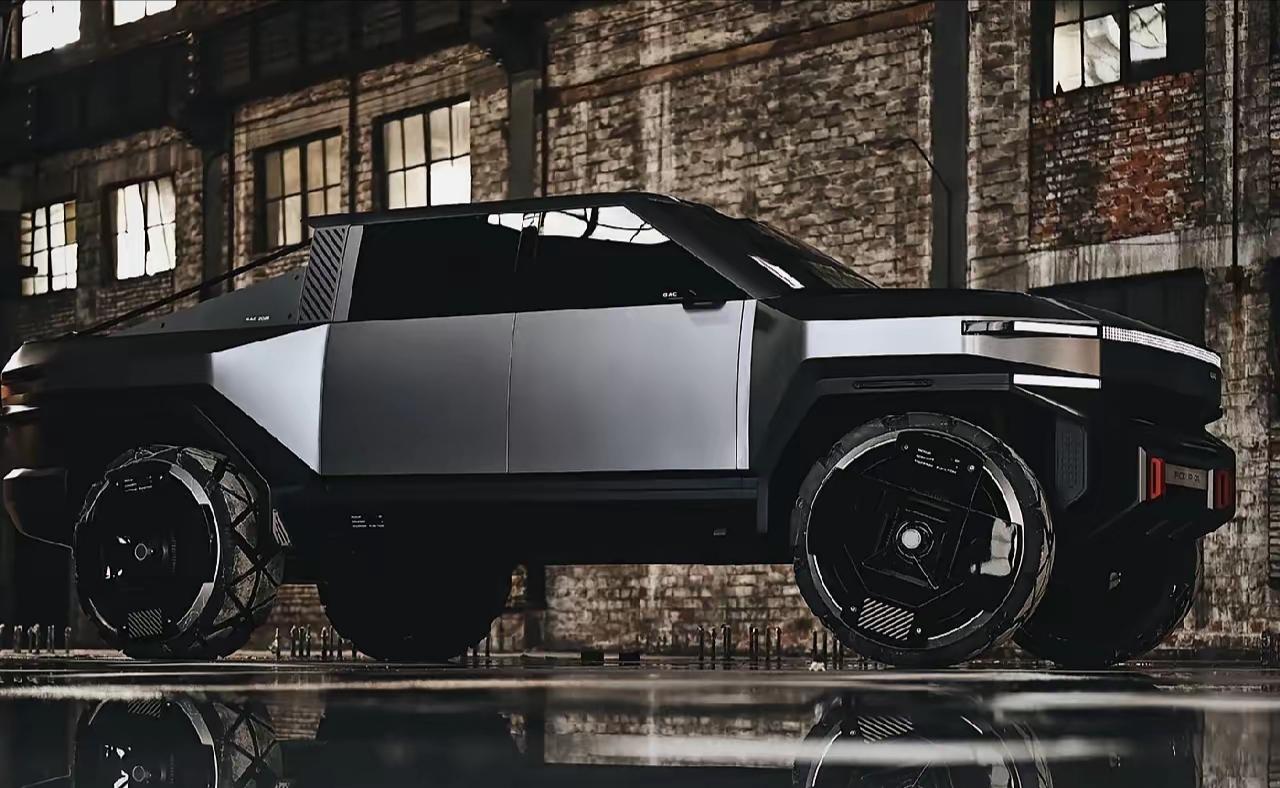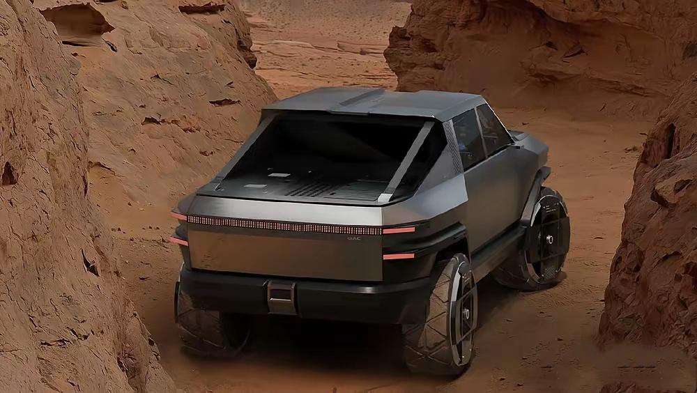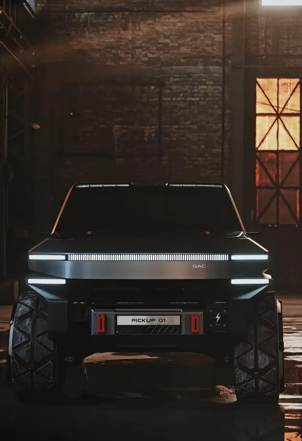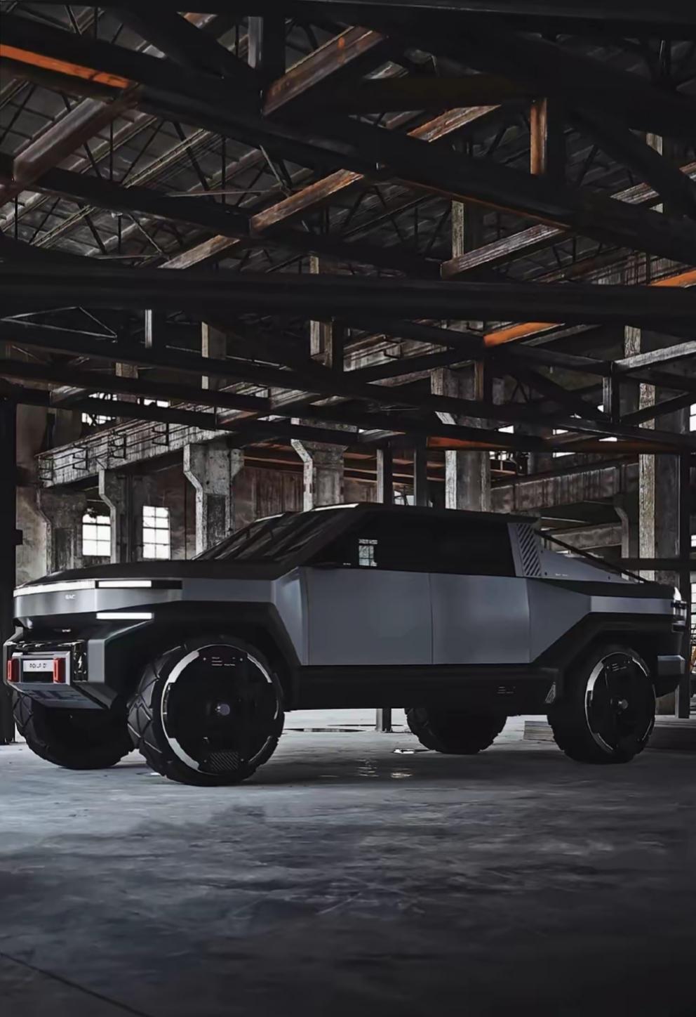 据说这是广汽版赛博皮卡概念车,其硬朗、科幻的设计线条不输特斯拉版,看着还不错,希