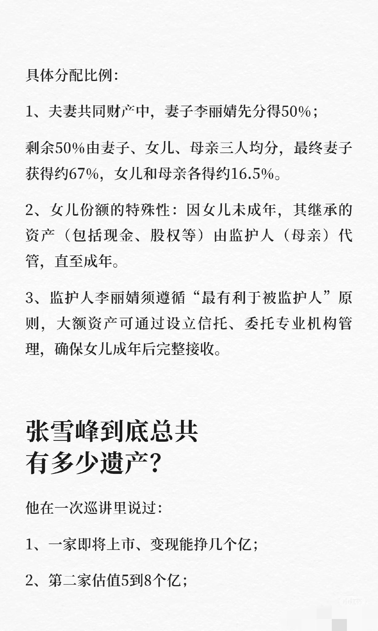 张雪峰先生的遗产规模确实令人瞩目。近日有律师从专业角度分析了其妻子与女儿在遗产分配中可能获得的份额,分析过程逻辑清晰、有理有据,内容颇具参考价值。