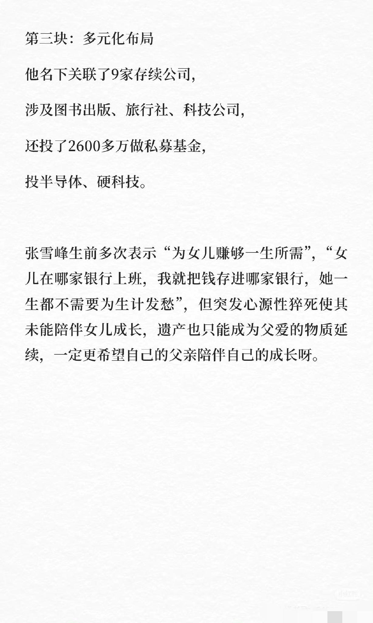 张雪峰先生的遗产规模确实令人瞩目。近日有律师从专业角度分析了其妻子与女儿在遗产分