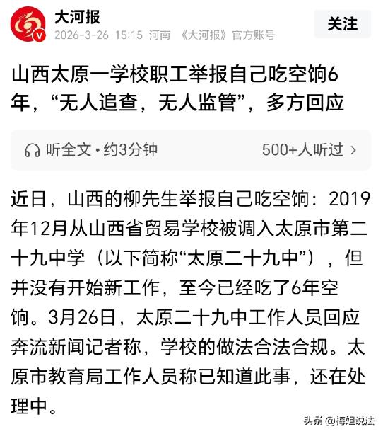 山西太原,一名男教师遭遇违规调动,从山西省贸易学校被调至太原市第二十九中学。他对新单位不满意,渴望回到原单位,然而各方却相互推诿,无人给他办理。在求助无门的情况下,他无奈拒绝上班,甚至主动举报自己吃空饷长达6年,他表示自己不想被动违法,即便工资被追回也能接受,只盼能调回原单位。 柳先生,本是山西省贸易学校职工,他在这里工作了多年。 2019年12月,一纸调动通知,他被违规调至太原市第二十九中学,他看出调动材料上问题多多,审批盖章空白、先批后请示、职级被改,完全不符合正常调动流程。 当时,柳先生心里是一百个不愿意,可还是硬着头皮在二十九中上了一个月班。 这一个月里,他满心都是对原单位的思念,对新环境各种不适应。 于是,他开始四处奔走,要求调回原单位,谁知这一维权,就是6年。 这6年里,柳先生跑遍了相关部门,每一次都是满怀希望地去,垂头丧气地回,他向纪委反映情况,可结果都是无果。 相关部门就像踢皮球一样,你推给我,我推给你,就是没人真正解决他的问题。 从2020年2月起,柳先生没再去上班,可工资却照领不误。 一开始,他还觉得有点庆幸,可时间一长,他心里越来越不安,他担心自己这样涉嫌违法,毕竟吃空饷可不是小事。 思来想去,他决定主动举报自己吃空饷,他说自己不想被动违法,即便工资被追回也能接受,只盼能调回原单位。 二十九中,曾经也同意过调回柳先生,可就是没落实。 柳先生就像陷入了一个死循环,怎么也走不出来,相关部门还在处理这件事,可这处理速度实在让人着急。 柳先生觉得自己太委屈了,他只是想回到原来的工作岗位,怎么就这么难呢? 从柳先生的角度看,他原本在山西省贸易学校工作得好好的,突然被违规调动,这对他来说太不公平了。 他为了回到原单位,付出了6年的努力,这6年里,他承受了很大的压力。 从学校和相关部门的立场来说,他们可能觉得调动是正常的工作安排,柳先生应该服从。 可这调动明显有问题,他们却视而不见,还相互推诿,这实在说不过去。 从法律依据来看,根据《事业单位人事管理条例》规定,事业单位工作人员调动应当遵循规定的程序和条件。 柳先生的调动材料问题多多,明显不符合规定,这属于违规调动。 违规调动,为何能顺利进行?在调动过程中是否存在失职的行为呢? 根据事业单位人事管理条例,调动需经过严格的审批程序,包括本人申请、单位审核、主管部门批准等环节,且调动材料必须完整准确。 柳先生的调动材料审批盖章空白、先批后请示、职级被改,这明显不符合规定。 相关单位在调动过程中没有尽到审核义务,存在失职行为。 柳先生吃空饷的行为固然不对,可他也是被逼无奈,他主动举报自己,是不是应该从轻处理呢? 吃空饷,是指机关事业单位在编在职人员违规领取薪酬,而实际未到岗工作。 柳先生从2020年2月起未上班却领了6年工资,这符合吃空饷的特征。 不过,他主动举报自己,表明他有改正错误的意愿。 根据相关法律规定,对于主动交代问题、积极退还违法所得的,可以从轻或者减轻处理。 相关部门的相互推诿,这种希望,已经违反了行政机关的职责要求。 行政机关应当依法履行职责,对公民的诉求及时处理。 相关部门在柳先生维权过程中,没有积极解决问题,而是相互踢皮球,这属于不作为行为。 柳先生可以通过行政复议或者行政诉讼的方式,要求相关部门履行职责。 既然调动本身是违规的,那么,柳先生要求调回原单位是合理合法的。 原单位和相关主管部门应当根据实际情况,纠正违规调动行为,让柳先生回到原来的工作岗位。 无论是单位还是个人,都要遵守法律法规,依法办事,更应当积极履行职责,不能相互推诿。 目前,此事还在调查处理中,没有最终的结果。 希望,柳老师的这件事,可以尽快的帮他解决处理好! 大家觉得,遇到类似的事情,该怎么更好地维护自己的权益呢?