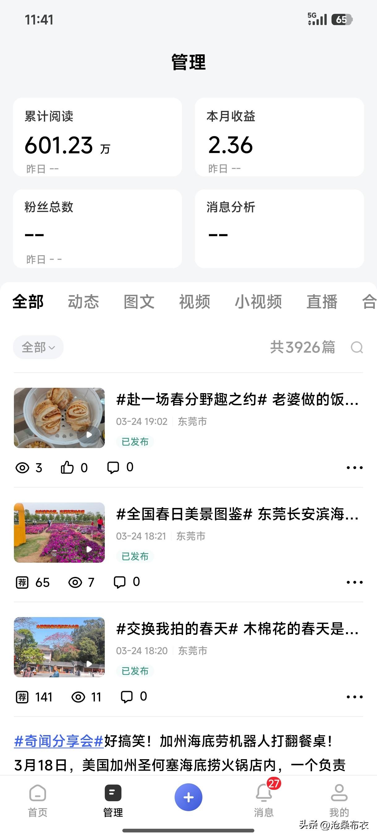 晒出你的本地生活3月,东莞打工的我有点喜欢百度、百家号了,因为每天可以赚个几毛钱