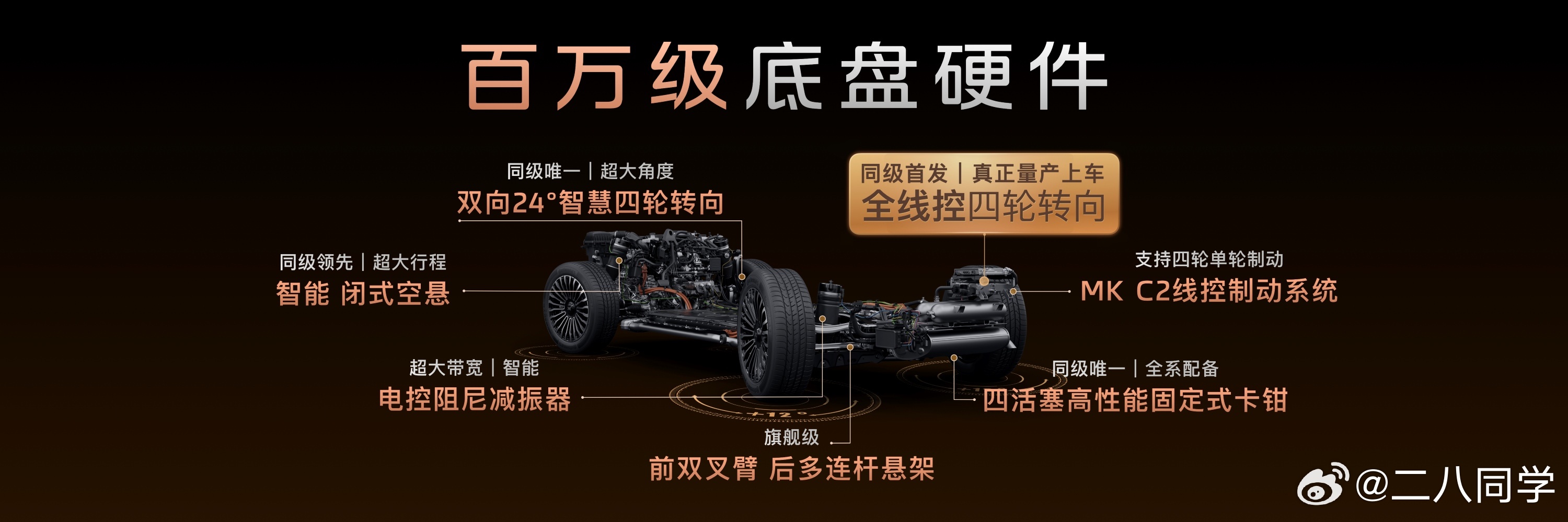 驾控上,新车全系搭载灵蜥数字底盘3.0,配备双电机矢量四驱,零百加速达4秒级,还有同级唯一双向24°智慧后轮转向、首发全线控四轮转向,兼具灵活性与安全性,更是高阶辅助驾驶的技术基础。智能方面,搭载英伟达Thor芯片、520线激光雷达,IM AD辅助驾驶能力领先,未来可升级至L4级模型,还配备IM Ultra Agent 1.0,打通阿里生态实现出行需求语音全解。空间上,Ultra Wide³超宽体座舱空间充裕,独有132°躺角沙发椅,后备箱装载能力强,六座版可切换大四座,还配备B&O音响等百万级奢享配置。动力采用恒星超级增程,CLTC综合续航1605km,纯电续航430km,搭载800V超快充平台,能耗低且适应全路况、全气候。