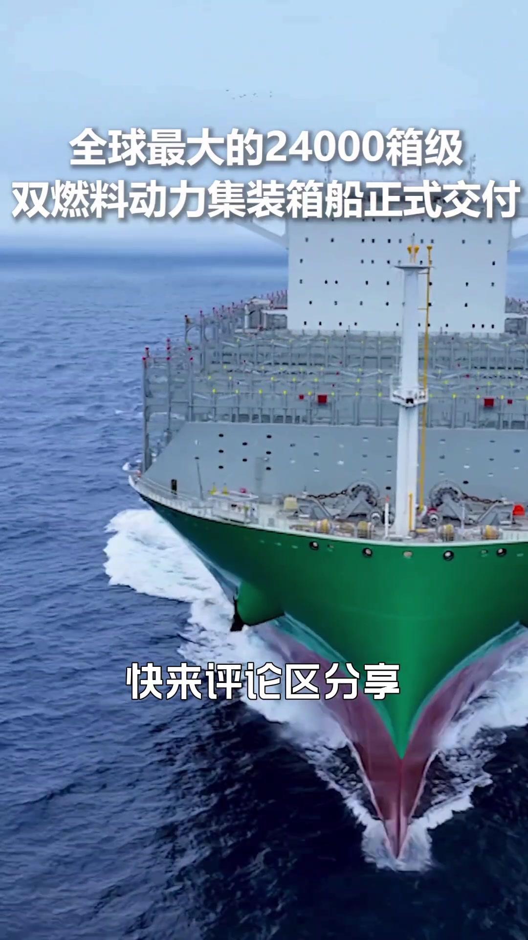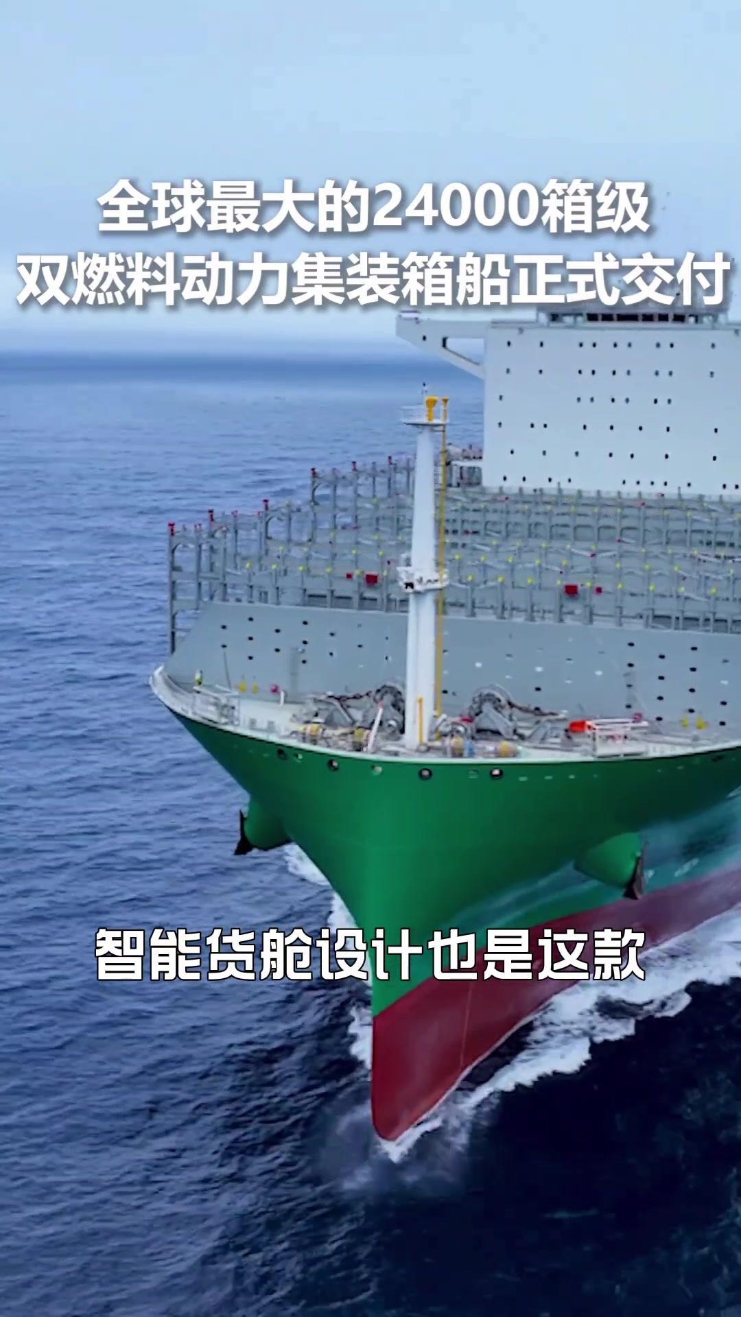 🚢全球最大的带货王——24,000箱级双燃料动力集装箱船 ✨中船集团交付的24,000箱级双燃料动力集装箱船荣登榜首,让我们一探究竟。 1️⃣这款集装箱船的载货能力令人惊叹,一次可承载22万多货物,相当于24,000个标准集装箱。它的高度与25层楼不相上下,甲板面积达到了惊人的37,000平方米,如果用来停飞机,40架波音747都能轻松容纳。 2️⃣动力系统方面,采用了先进的双燃料设计,液化天然气LNG作为动力源,不仅实现了硫氧化物、磷排放,氮氧化物排放量也大幅减少了85%,二氧化碳排放量更是降低了25%。 3️⃣强大的续航能力让它单个航次可达近2万海里,轻松跨越各大洋。智能货舱设计是亮点,运用智能堆垛算法,根据货物重量、尺寸和目的地,自动规划最合理的堆放方案,提高了货物装卸和运输的效率,让航运变得更智能化和便捷化。 这款24,000箱级双燃料动力集装箱船无疑是航运业的佼佼者。