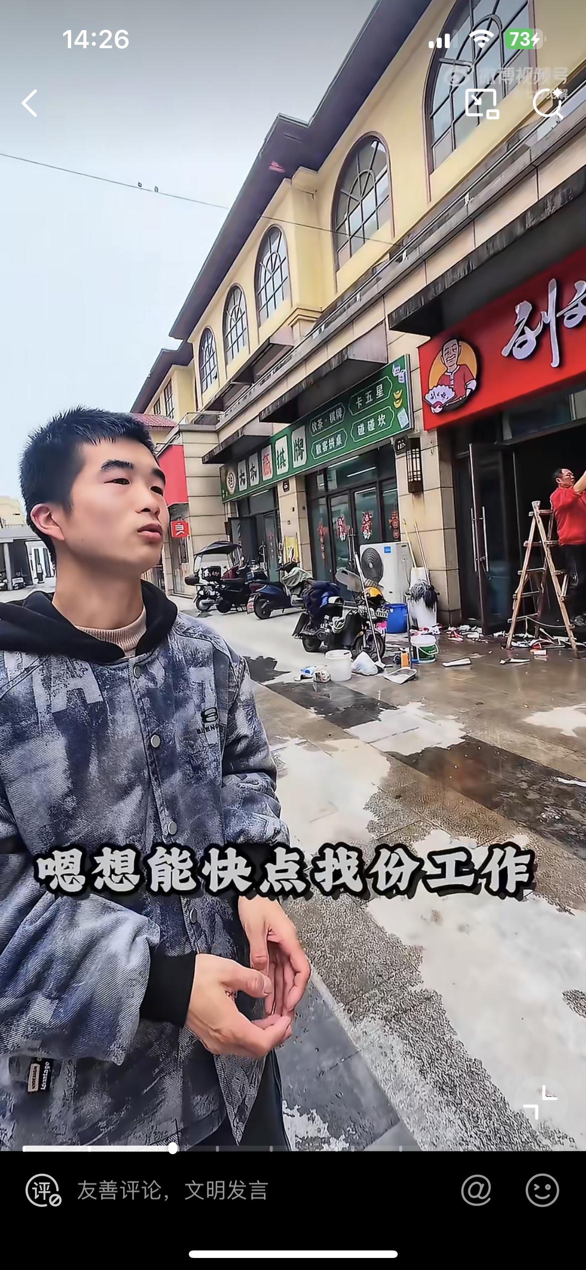 小伙武汉找工作处处碰壁,在一家麻辣烫店遇到好心的店主,让他干了半天活,给他结了一点工资。小伙来武汉一个星期,身上带的钱只剩几百块了,想尽快找一个工作,能养活自己。无奈现在很多的店生意不景气,招的人很少。小伙看到这个在装修的麻辣烫店,来碰运气,结果老板人都招满了,也不需要。听说小伙得了青光眼,需要2 万多块的治疗费,但是家里现在拿不出,小伙很焦急。老板虽然不招人,但是留他在店里帮干了半天活。给他结了一点工资,好让小伙能多度几日。