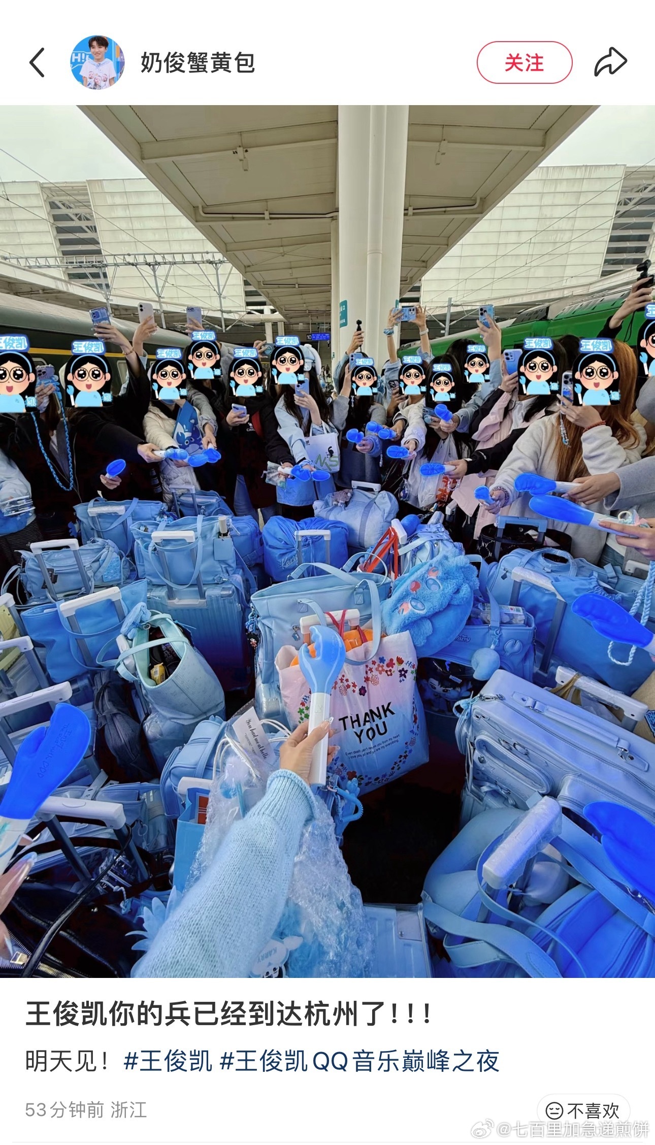 王俊凯的粉丝小螃蟹到达杭州,好多人啊 出道这么久的偶像,依然线下有巨大人气