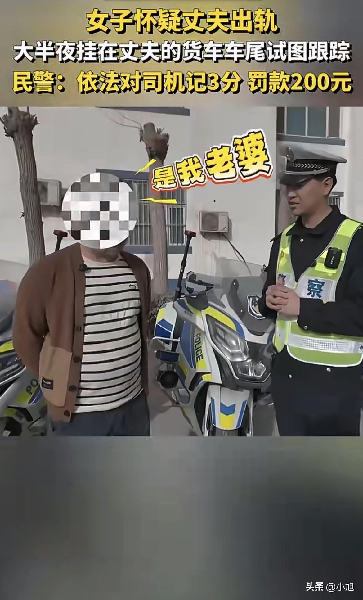 3月24号晚上九点多,新疆喀什巴楚县。 友谊路和银花路交叉口,执勤交警往车流里扫了一眼,突然觉得不对劲。 一辆正常行驶的小货车后面,扒着一个人。 是个女的。双手死死抓着车厢后挡板,整个身子悬在外面,脚离地的那种。没有安全带,没有任何防护,大晚上的,风呼呼吹,她就那么挂在车尾跟着跑。 交警赶紧示意靠边停车。 车停稳后,交警把女子从车后扶下来,转头问司机:“后面挂着的人你认识吗?” 司机回头看,整个人傻了。 他说了四个字:“是我老婆。” 丈夫姓玉,是这辆货车的驾驶人。他压根不知道自己车后面挂了个人,从出门到被拦下来,全程不知情。 那女人为什么要扒车? 她怀疑丈夫出轨。 趁丈夫准备开车出门的时候,她悄悄爬到车尾挂上去,想用这种办法跟踪丈夫,看看他到底去哪里、见什么人。 她没告诉任何人,就那么挂在后面,跟着车走了一路。 当时是晚上九点多,天已经黑了。路上车不多,车速也不快,距离也不长,所以没出大事。 但这事有多危险,不用多说。稍微一个急刹,或者拐弯时车身晃一下,人就甩下去了。轻则重伤,重则没命。 交警处理的结果是:司机记3分,罚款200元。 处罚理由是——出车前未绕车检查,未观察车辆周围安全状况。 丈夫被罚了,老婆没事。 很多人看到这个结果第一反应是:老公是受害者,怎么罚的是他? 其实交警的处罚逻辑很简单。 驾驶证考核的科目三里,上车前必须逆时针绕车一周检查。这个动作不是走过场,是为了观察车辆周围有没有障碍物、小动物、或者人。 《道路交通安全法》第二十二条也有规定:机动车驾驶人应当按照操作规范安全驾驶、文明驾驶。上车前绕车检查,就是“安全驾驶注意义务”的一部分。 如果一个司机连车后面挂了个大活人都不知道就开车上路,被罚不冤。 但这件事真正让人想不通的,是这个女人的行为。 她把自己当成人肉挂件挂在车尾,不要命地去跟踪自己的丈夫。 不查手机,不找人盯梢,不坐下来问清楚,直接拿命去赌。 她挂在车尾的时候在想什么? 可能是想亲眼看看丈夫到底去了哪里,见了什么人,抓到证据那一刻的痛快。 也可能什么都没想,就剩一个念头:我倒要看看你去哪。 但有没有想过,如果车颠一下,如果丈夫变个道,如果后面有车追尾,她人就没了。命没了,就算抓到证据,又能怎样? 再说那个开车的丈夫。 被交警拦下来,回头看自己老婆挂在车尾,那一瞬间是什么感受? 后怕。吓出一身冷汗。 还有说不出的荒唐和疲惫。 跑运输养家糊口,结果老婆在后面挂着“跟踪”自己,这日子过得跟拍电影似的。 夫妻之间过到这一步,最可怕的不是出轨,是信任已经碎成这样了,两个人还在用这种方式互相消耗。 有人问,这女的到底是可怜还是可气? 可怜是真的。得有多没有安全感,才能干出这种事来? 可气也是真的。用极端的方式解决问题,最后害的是自己。 你觉得这件事里,谁的问题更大? 来源:新疆法治报