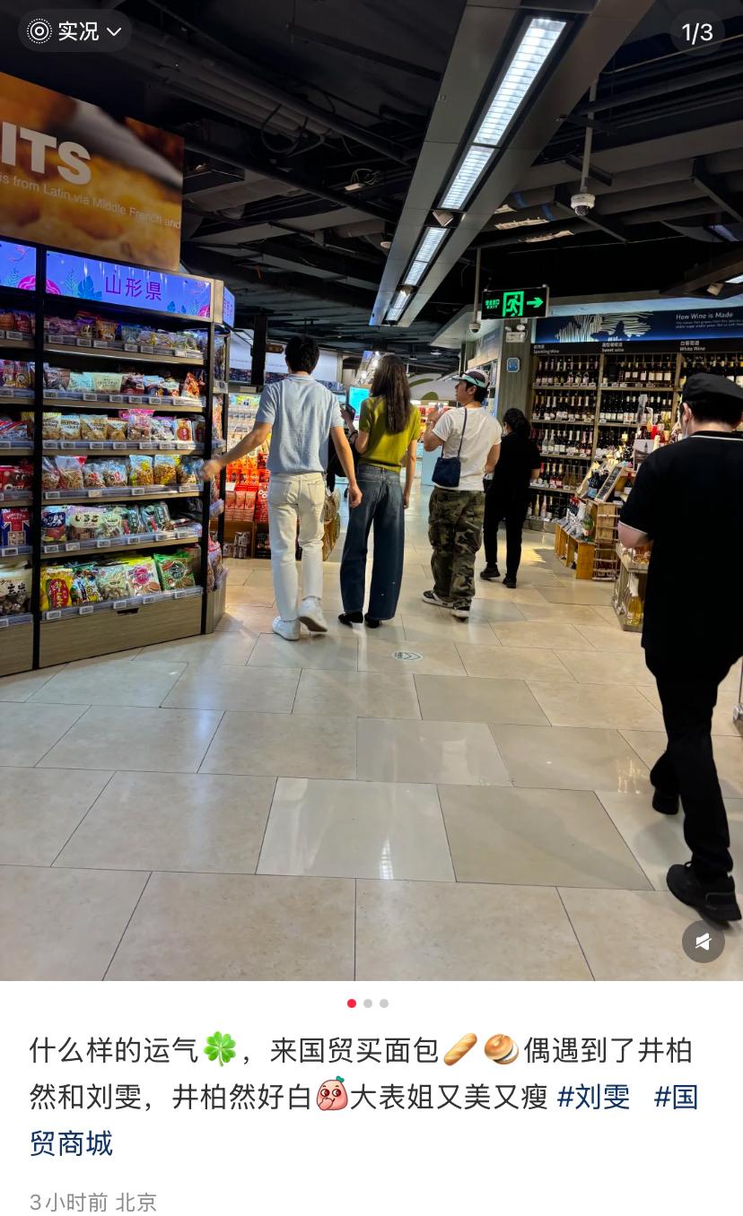 据网友透露,她去国贸某商场买面包时偶遇到井柏然与刘雯的,井柏然皮肤超白,刘雯(大表姐)又瘦又美,难得偶遇明星情侣出街,网友无比激动。