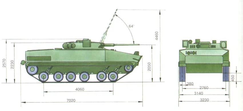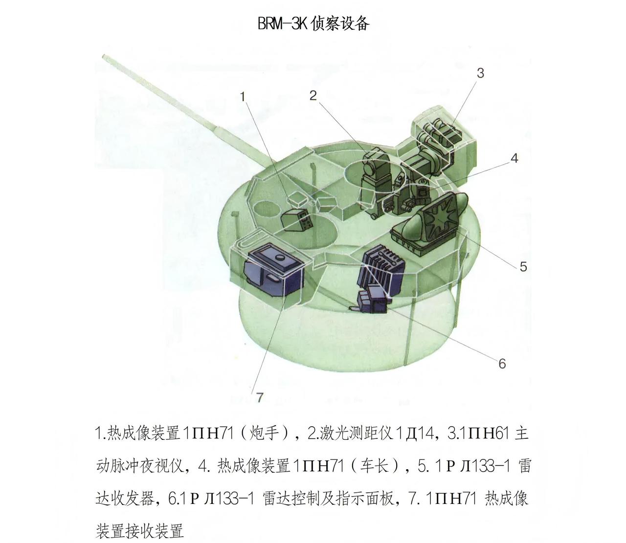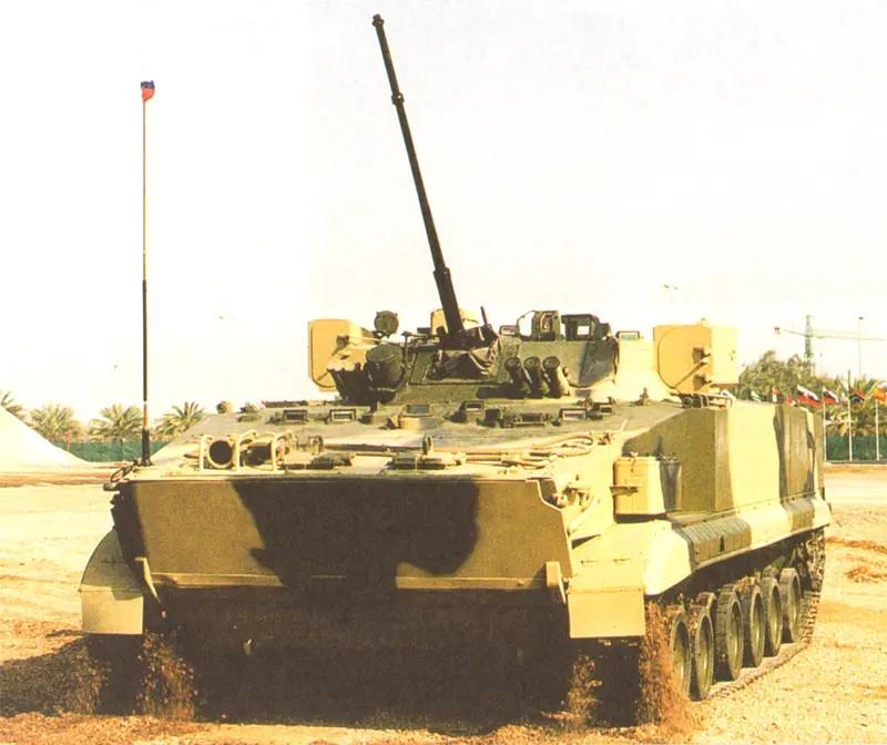 BRM-3K,一辆被侦察能力耽误的步兵战车 1990年代中期,在BMP-3步兵战车基础上推出了BRM-3K侦察车。 BRM-3K在BMP-3的底盘上换装了TKB-945无人炮塔,仅装1门2A42型30毫米机关炮和1挺7.62毫米并列机枪。炮塔两侧装有2具双联装“短号”-D反坦克导弹发射装置。车载侦察、通讯设备非常丰富,可升高至1米的伸缩式桅杆是其最为明显的识别特征。 新野郎:“BRM-3K比BMP-3更像传统的步兵战车。”