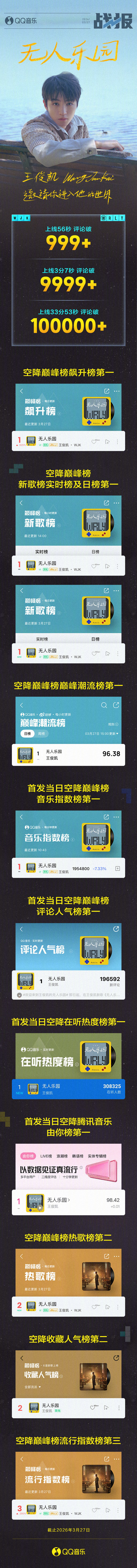 💙上线56秒 评论破999+💙上线3分7秒 评论破9999+💙上线33分53秒 评论破100000+💙空降巅峰榜飙升榜第一💙空降巅峰榜新歌榜实时榜及日榜第一💙空降巅峰榜巅峰潮流榜第一💙首发当日空降巅峰榜音乐指数榜第一💙首发当日空降巅峰榜评论人气榜第一💙首发当日空降在听热度榜第一💙首发当日空降腾讯音乐由你榜第一💙空降巅峰榜热歌榜第二💙空降收藏人气榜第二💙空降巅峰榜流行指数榜第三