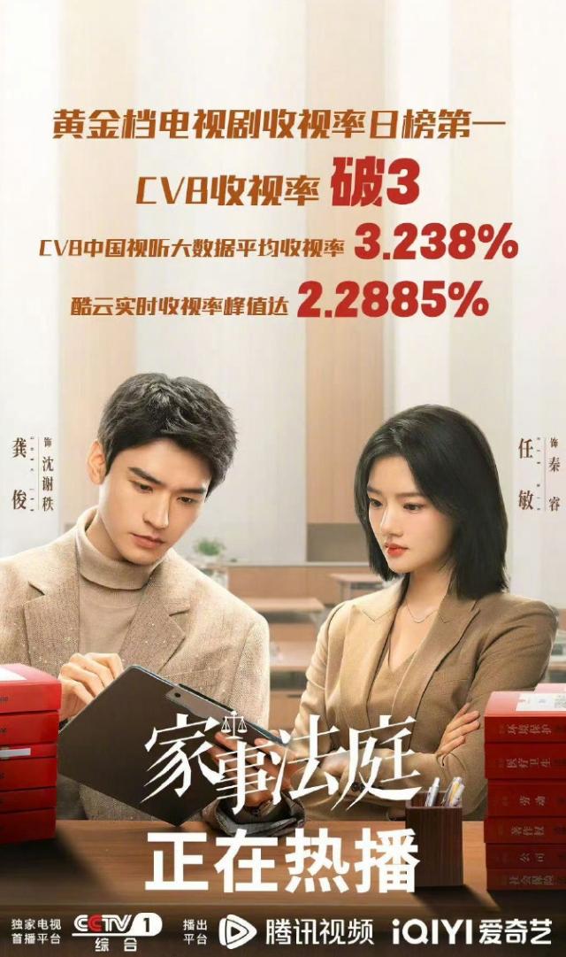 龚俊成内娱首位一番收视率破3%的90生! 龚俊《家事法庭》央一黄金档开播收视率3
