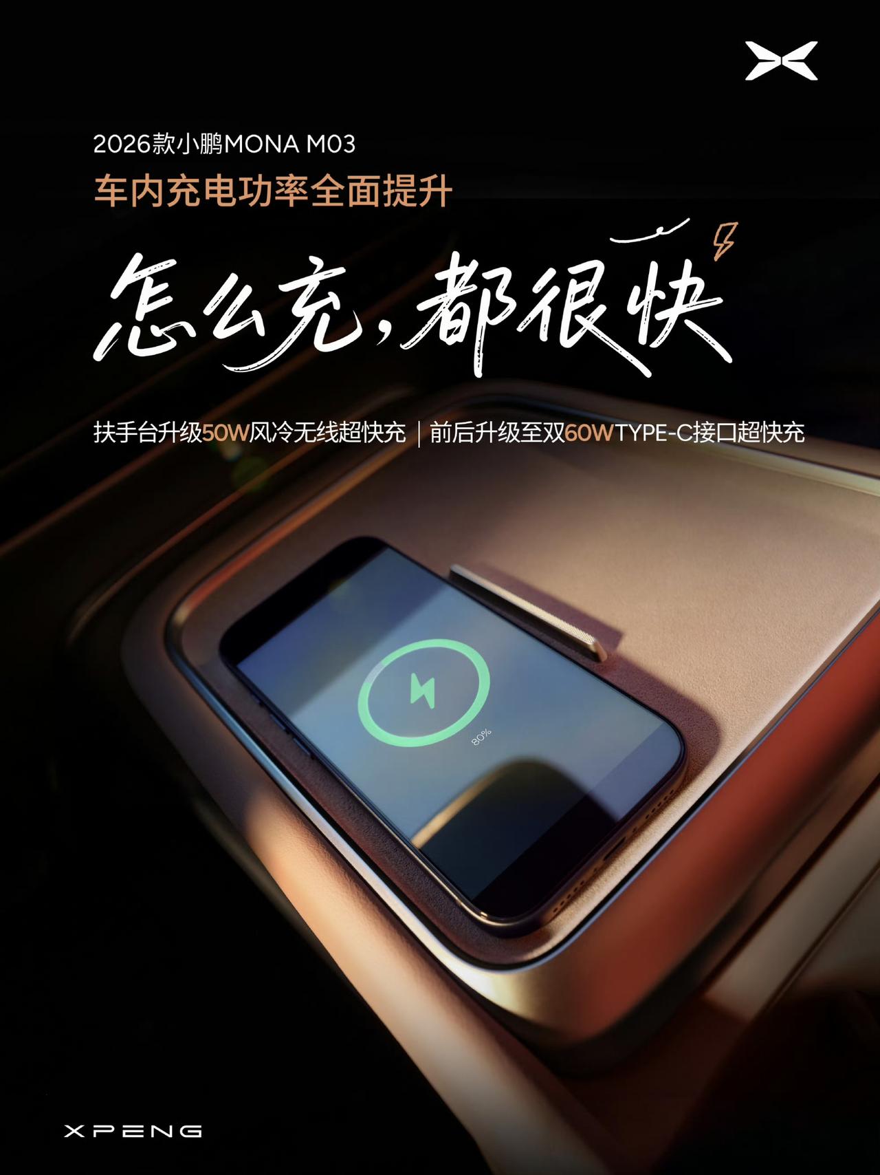 2026款小鹏MONA M03升级很大,要是最后不涨价,还真是挺疯狂的。 1,外观有一点升级 油漆质感提升了,以及无边框的外后视镜。 2,内饰: 前排升级了14点的云朵座椅按摩 前排50w无线快充 双层夹胶静音玻璃 美妆镜也变大了 方向盘加热 还有降噪模块 …… 3,智驾 Max版本搭载了AI图灵芯片,之前Max是英伟达的Orin芯片,算力提高到了750TOPS,之前是508TOPS。 这次也有AES功能了,十几万的车都有这种功能,牛比。 4,三电 Plus版本最高续航640km,之前最高续航620km,续航提升了。 Max版本最高续航610km,而且Max版本是3C电芯,支持快充了。 能耗也降低了一些,我看电驱效率提升了。 总之,买MONA还是更建议买max版本,这一万块钱得花,不然总觉得没买到精髓。 2026款小鹏MONA大大大大大升级【来自懂车帝车友圈】