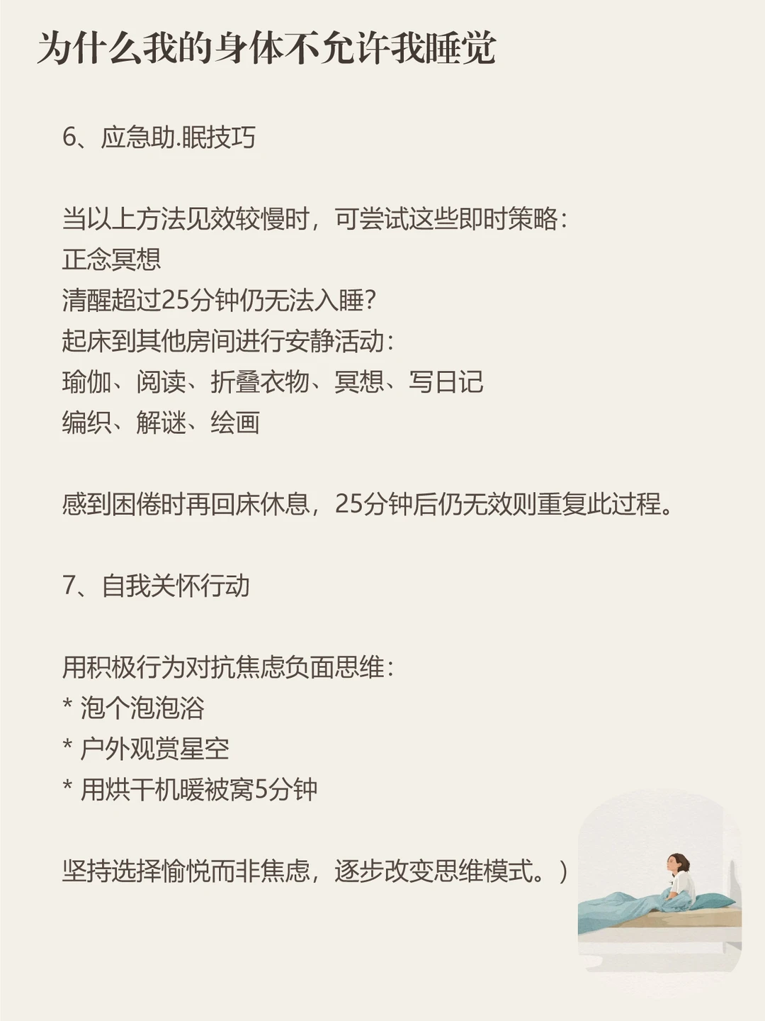 感到困倦时再回床休息,25分钟后仍无效则重复此过程。